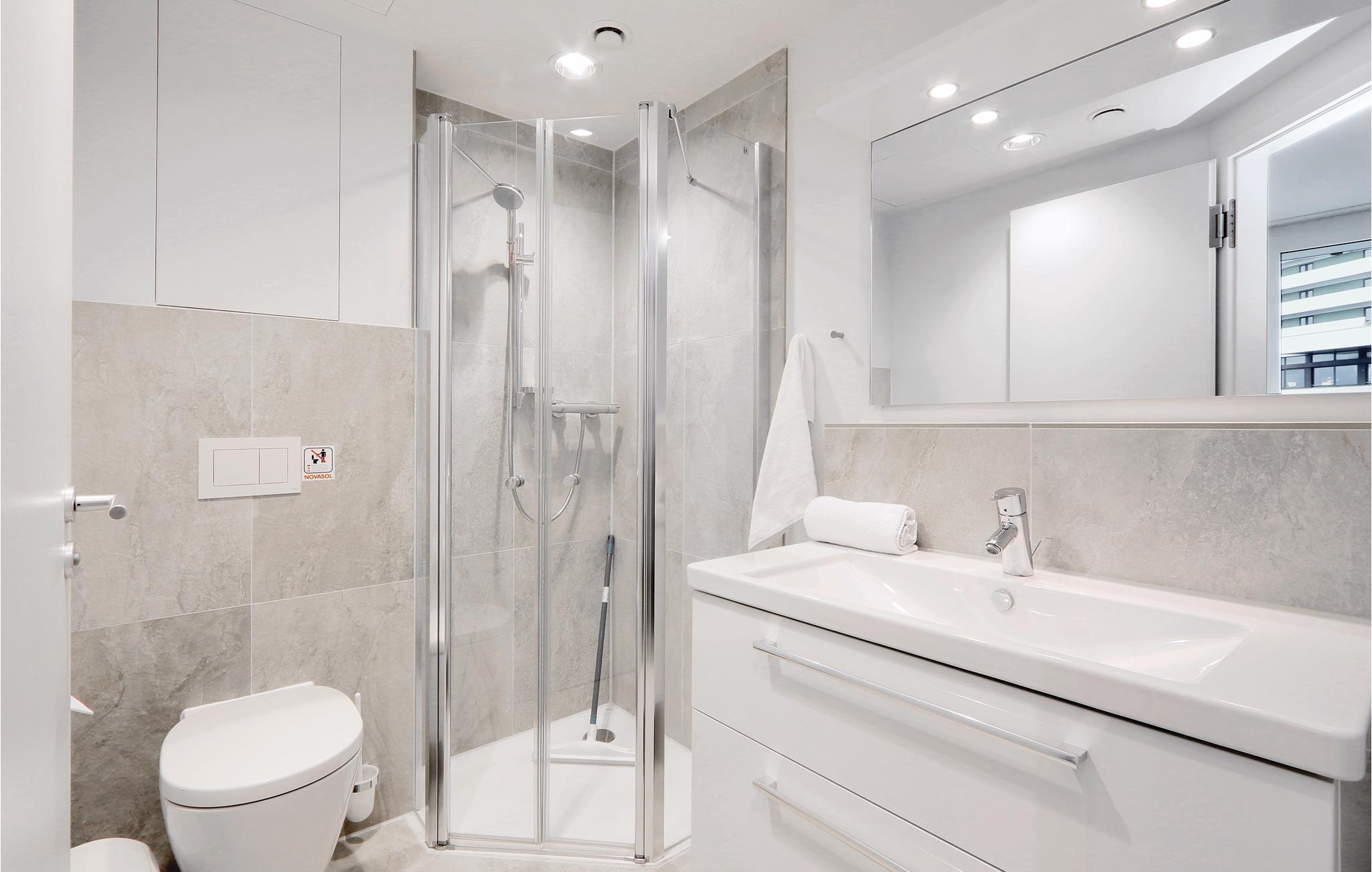 Badezimmer (nr. 1) - WC. Warmes und kaltes Wasser. Dusche