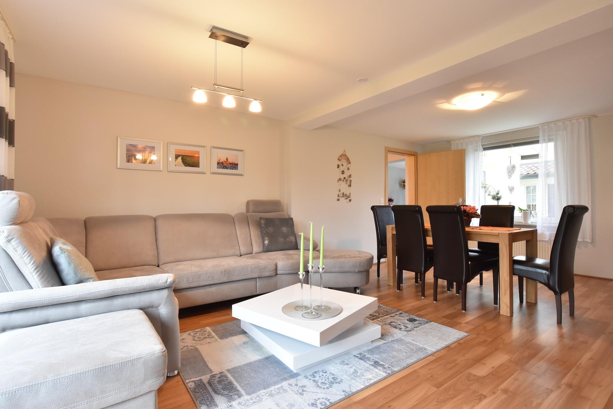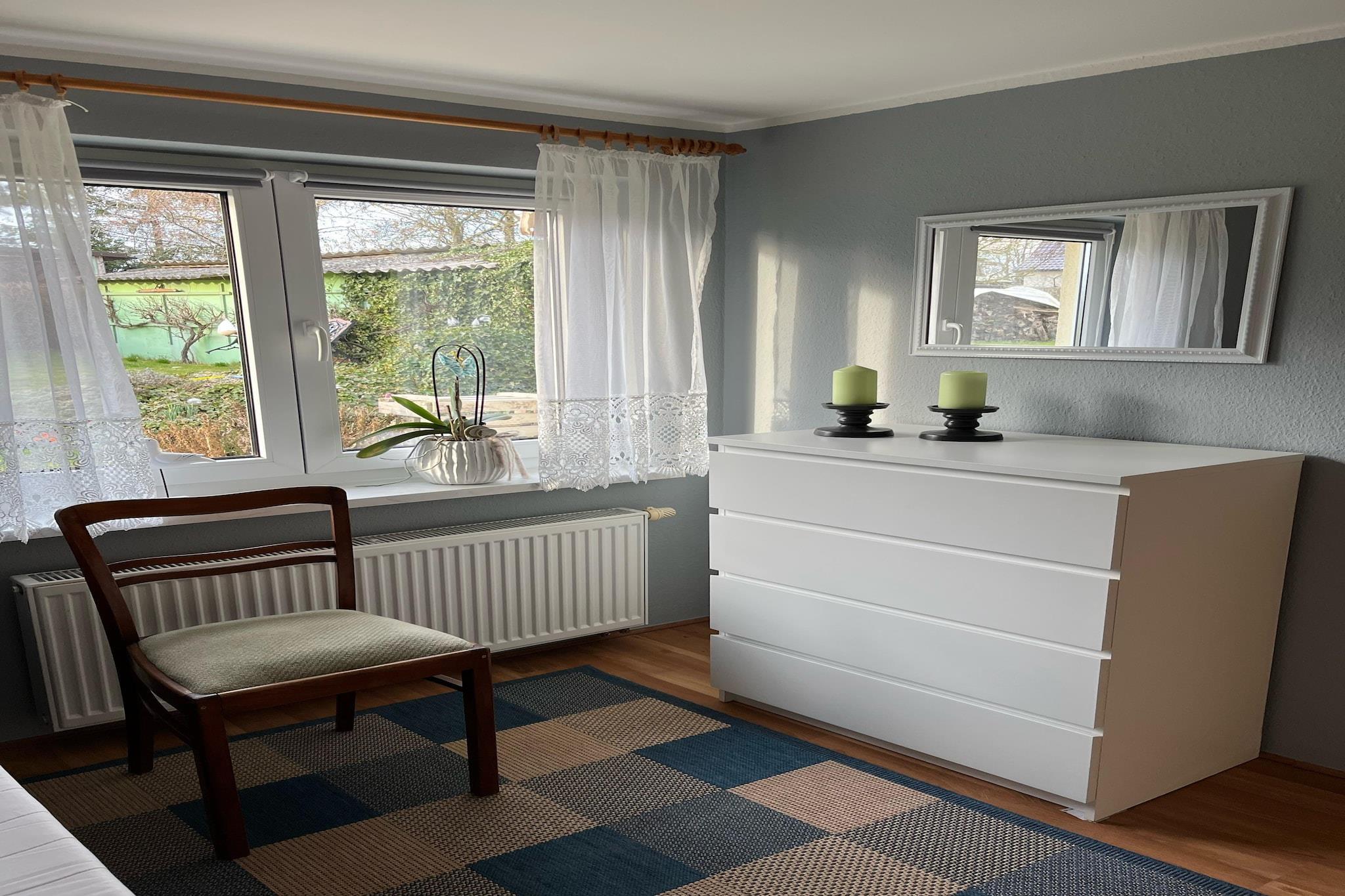 Just 3 km from the beach and bathing spots, this cozy ground-floor apartment in Hohenkirchen offers a relaxed retreat for families or couples. The open-plan living/dining room features a flatscreen TV, seating area, and dining table, while the fully equipped kitchen includes a coffee machine, oven, microwave, dishwasher, and fridge-freezer—perfect for easy self-catering. Two double bedrooms, one with a cot, provide restful sleeping arrangements, and the bathroom includes a shower, toilet, and washbasin. A high chair is available for little ones, and heating throughout ensures comfort year-round. Outside, enjoy a private terrace and garden with sun loungers, BBQ, and play equipment including a sandpit and slide. With general supplies 6 km away and Hansestadt Wismar just 10 km from your doorstep, this location blends countryside calm with coastal convenience.