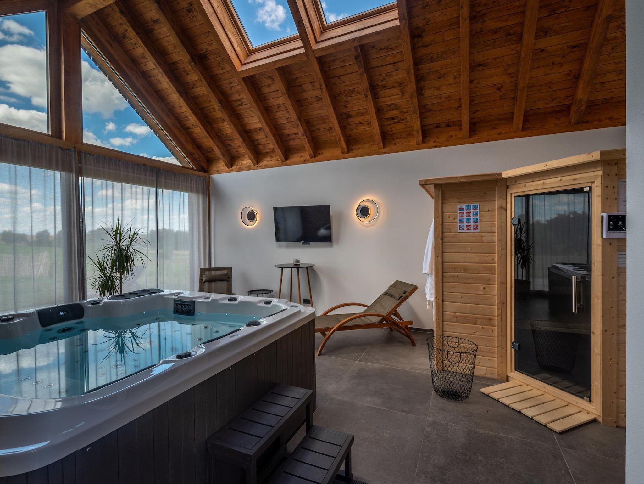 Das Highlight ist der große separate Wellnessbereich mit Whirlpool und Sauna.