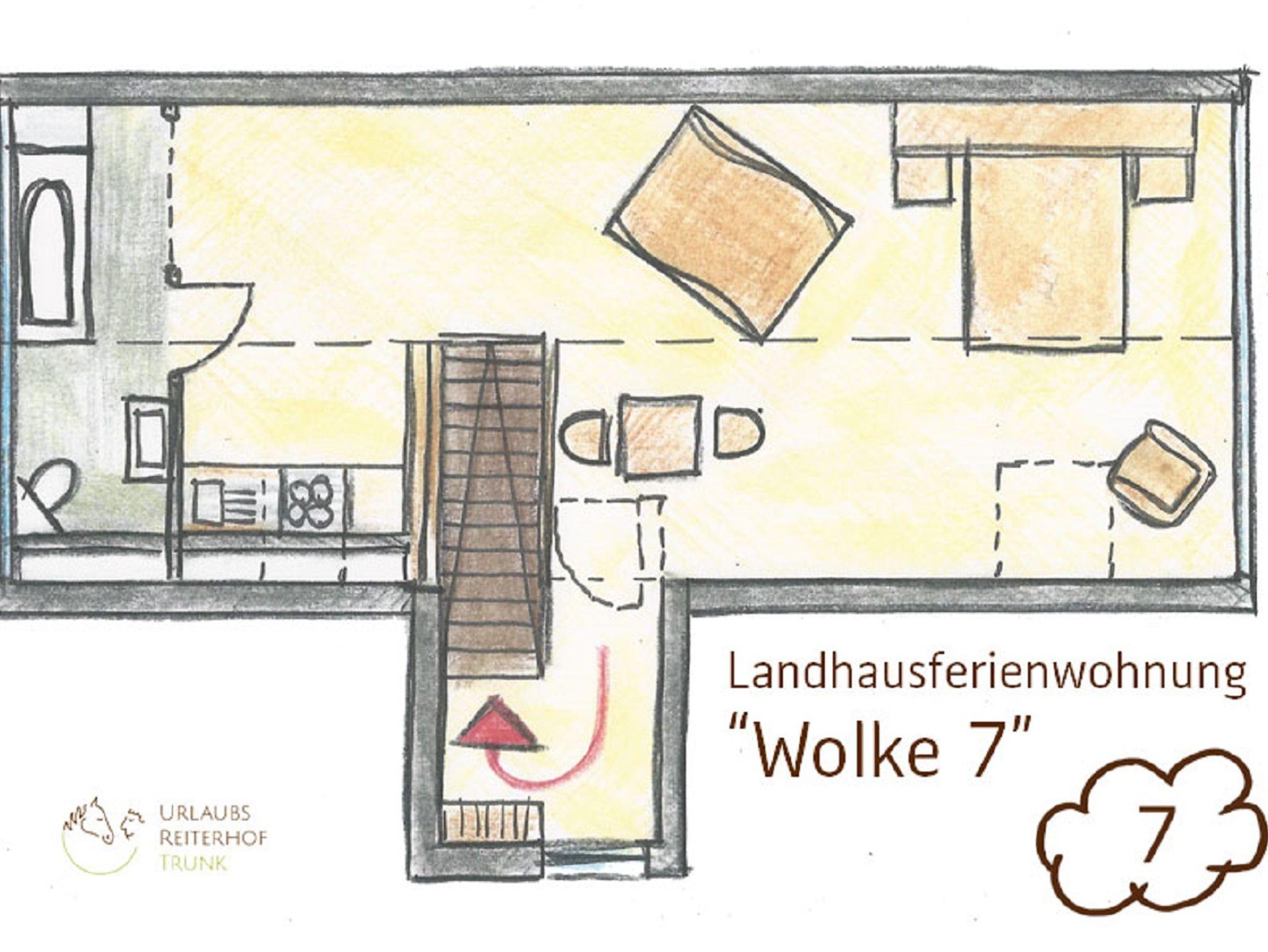 Urlaubsreiterhof Trunk, Ferienwohnung Wolke 7 für 1-2 Personen im Dachspitz mit wundervollem Blick über das Taubertal