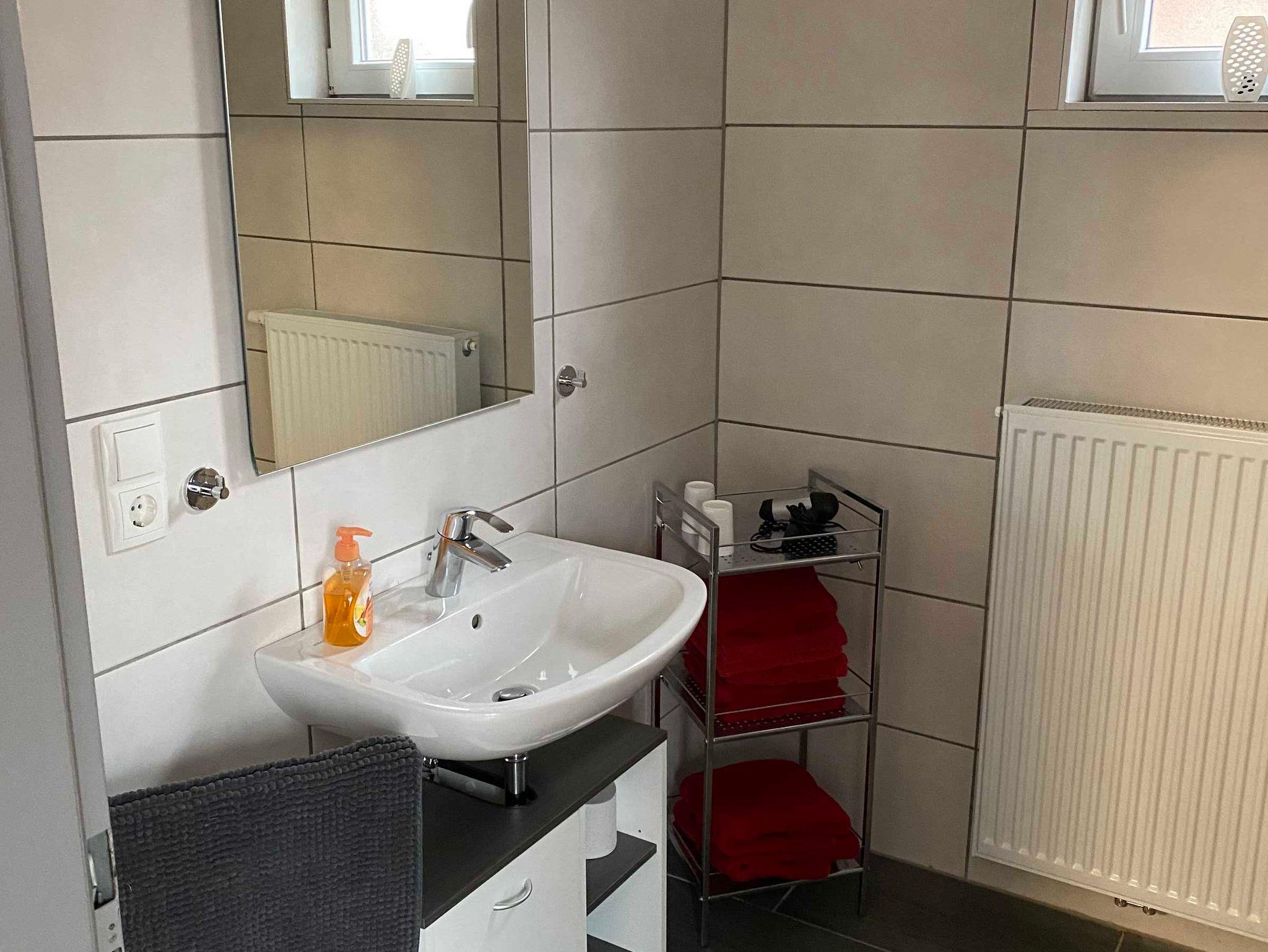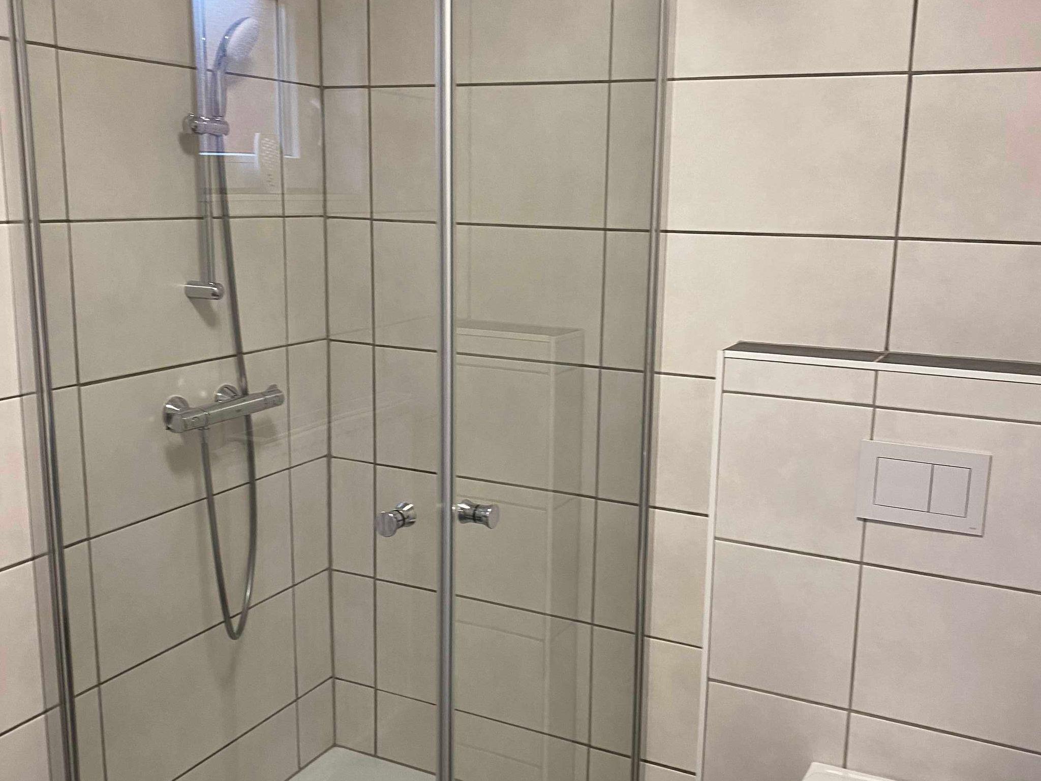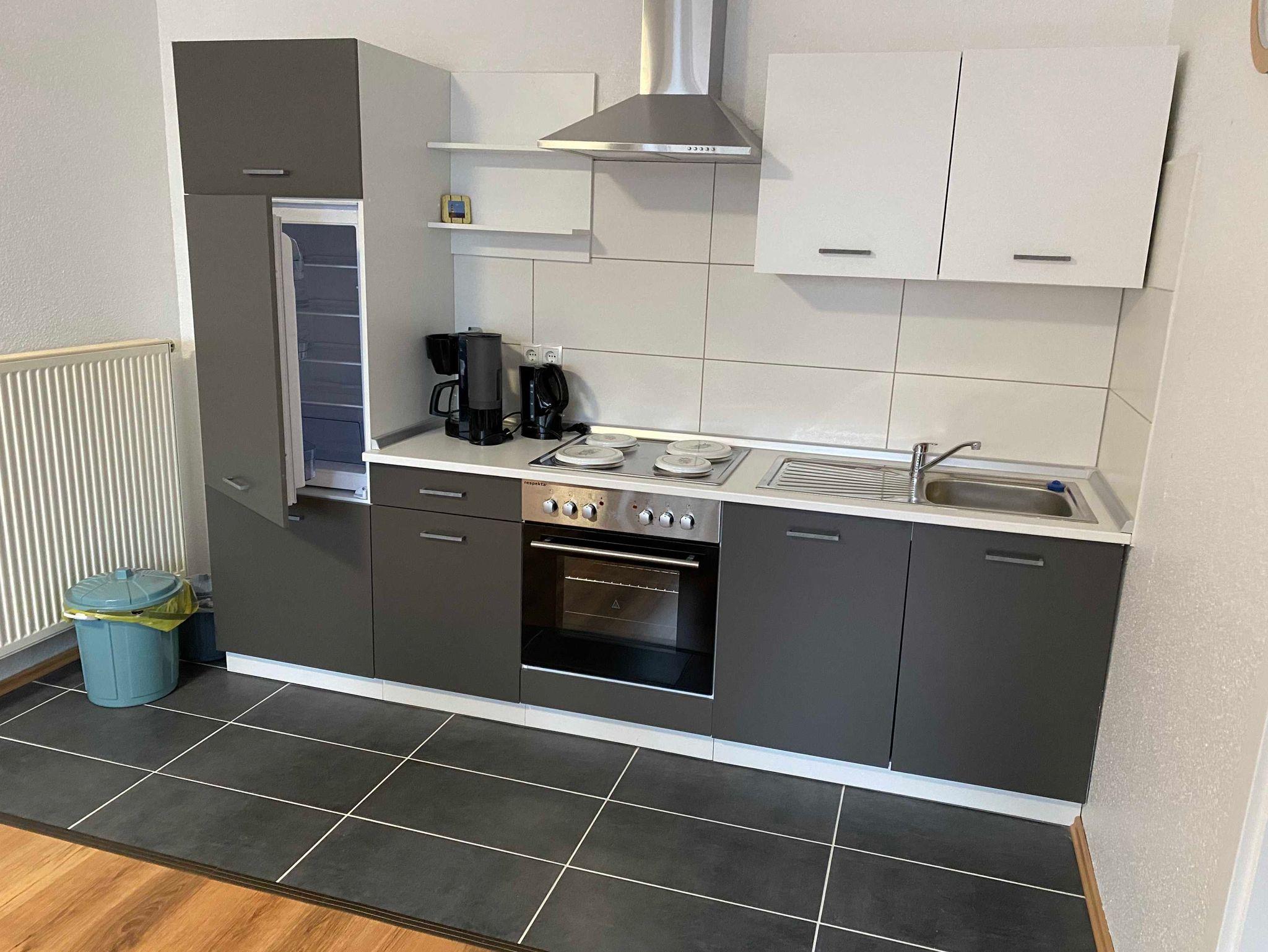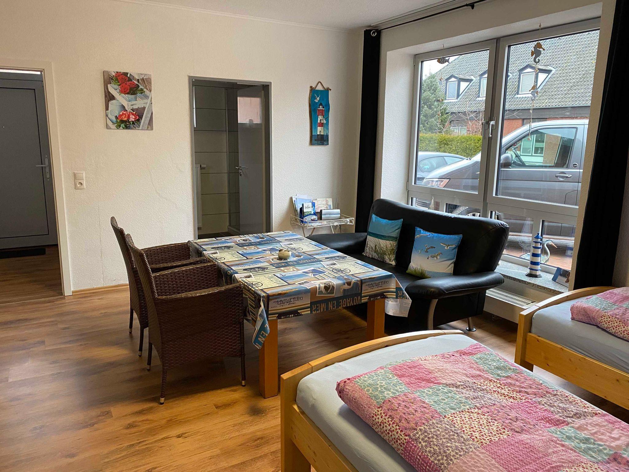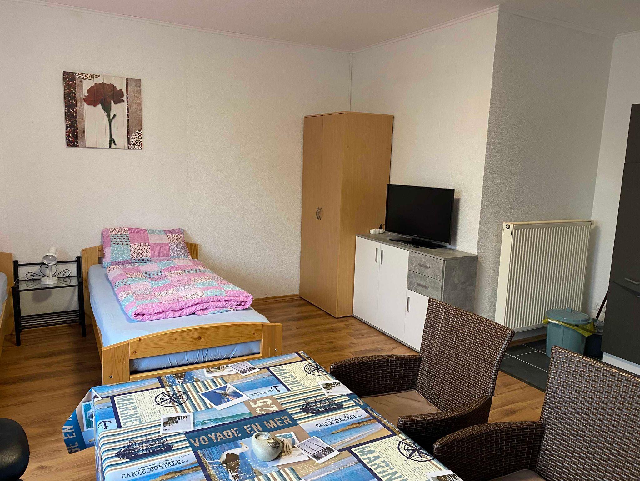 Das heutige Ferienappartement befindet sich in einem ehemalischen Raiffeisen Volksbank Gebäude und wurde komplett neu saniert. Sie gelangen über einen kleinen Flur in die Küche gemeinsam mit Schlaf- und Wohnbereich. Alles in einem Raum. Durch das große Fenster ist das Zimmer immer gut durch Tageslicht erhellt. Es gibt zwei getrennt stehende Betten, einen Esstisch mit einem zweier Sofa und zwei Stühlen soie eine moderne Küchenzeile. Nebenan befindet sich dann noch das komplett neu hergerichtete Badezimmer mit WC und Dusche im modernen Ambiente.