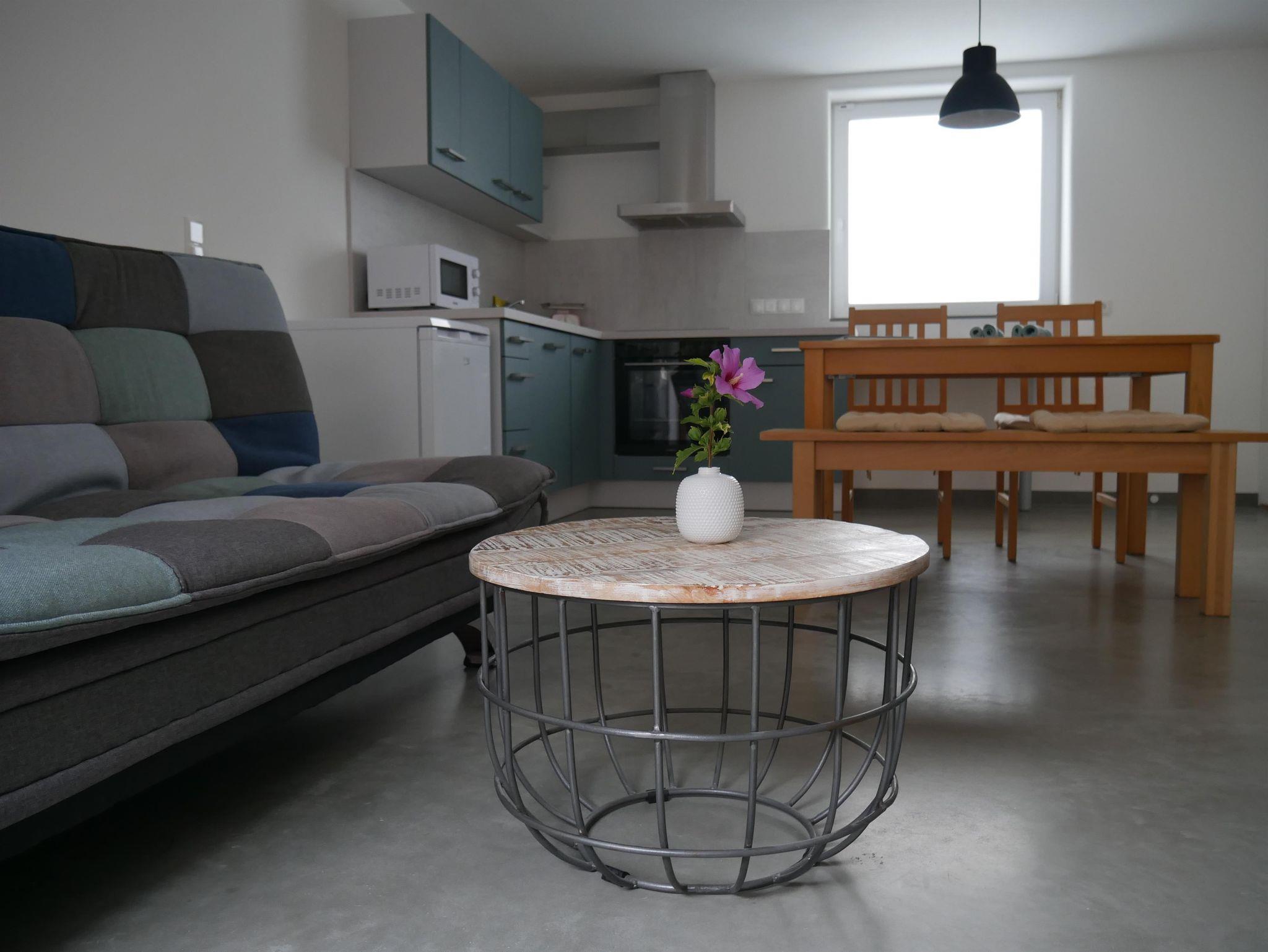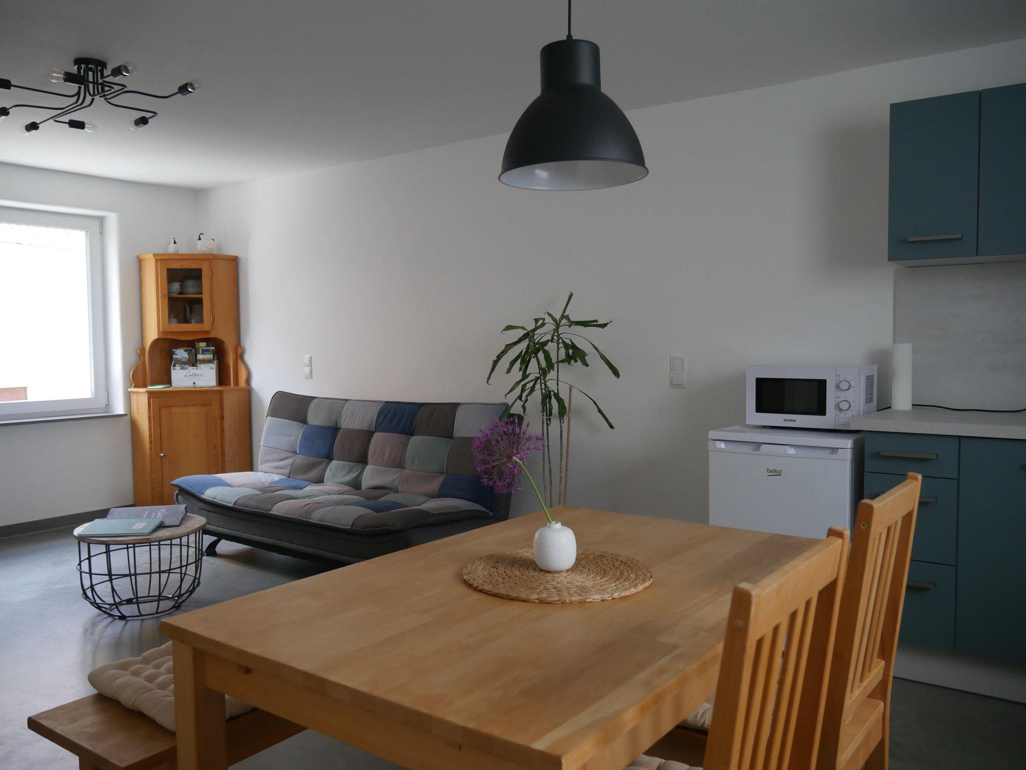 Auf ca. 50m² bietet unsere Ferienwohnung alle Annehmlichkeiten für einen gelungenen Pfalz-Urlaub. Das Badezimmer ist mit einer geräumigen Regendusche ausgestattet, im Wohn-/Essbereich befinden sich neben IP-TV auch eine voll ausgestattete Küchenzeile mit Geschirrspüler, Mikrowelle und Backofen, das Schlafzimmer verfügt über ein Boxspringbett.