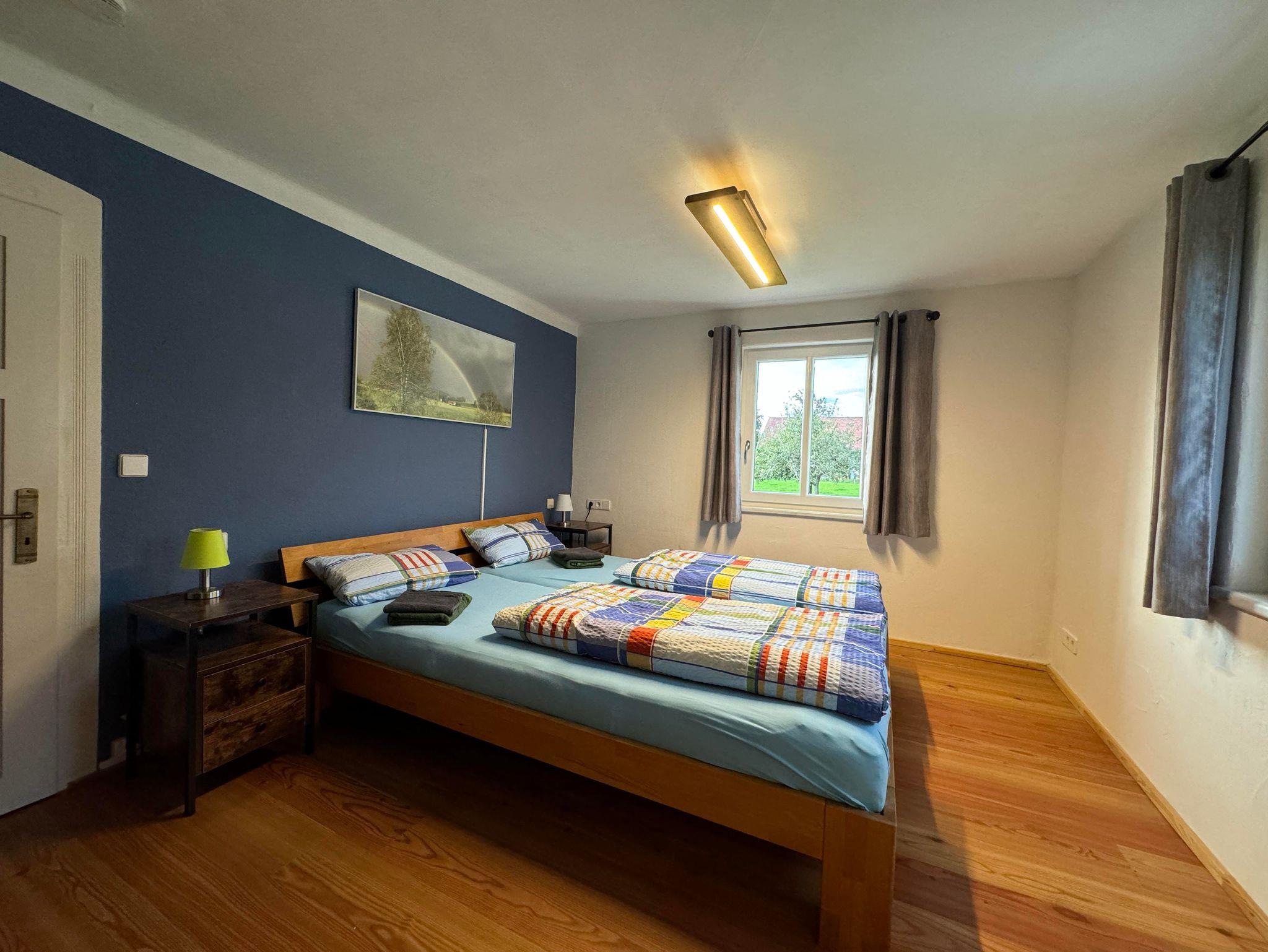 Gemütliche Schlafmöglichkeiten: Momentan bietet die Wohnung ein Doppelbett und vier Einzelbetten, ideal für eine kleinere Gruppe oder ein Team, das Wert auf Komfort legt.