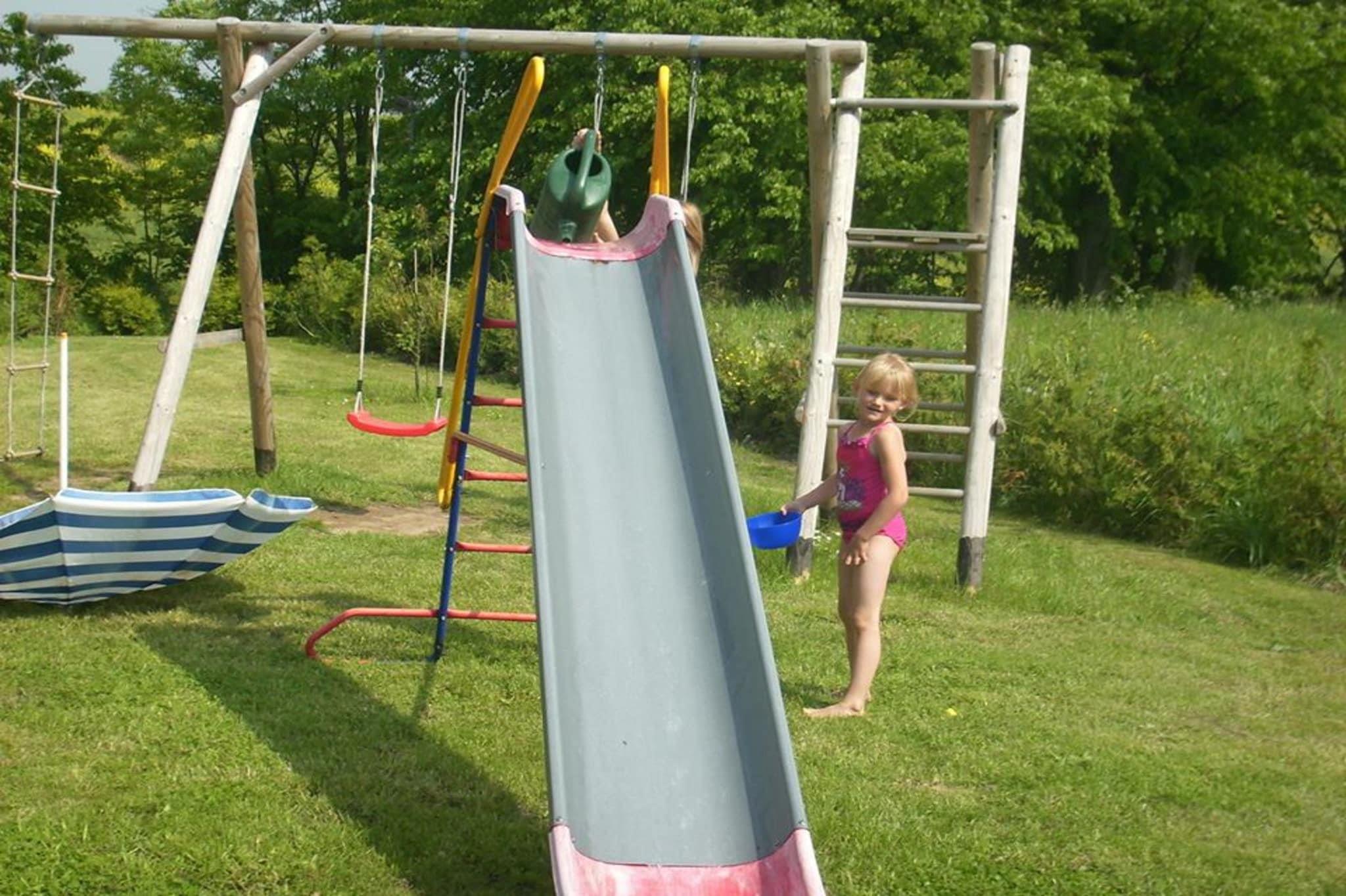 Ground floor: (Living/bed room(double bed or 2 single beds, TV, dining table, radio, electric kettle, coffee machine, cot, electric hot plates), bathroom(bath tub, washbasin, toilet), heating, high chair) terrace(private), garden(shared with the owner ), bicycle storage(shared with other guests), garden furniture, BBQ, parking, play equipment(shared with other guests)