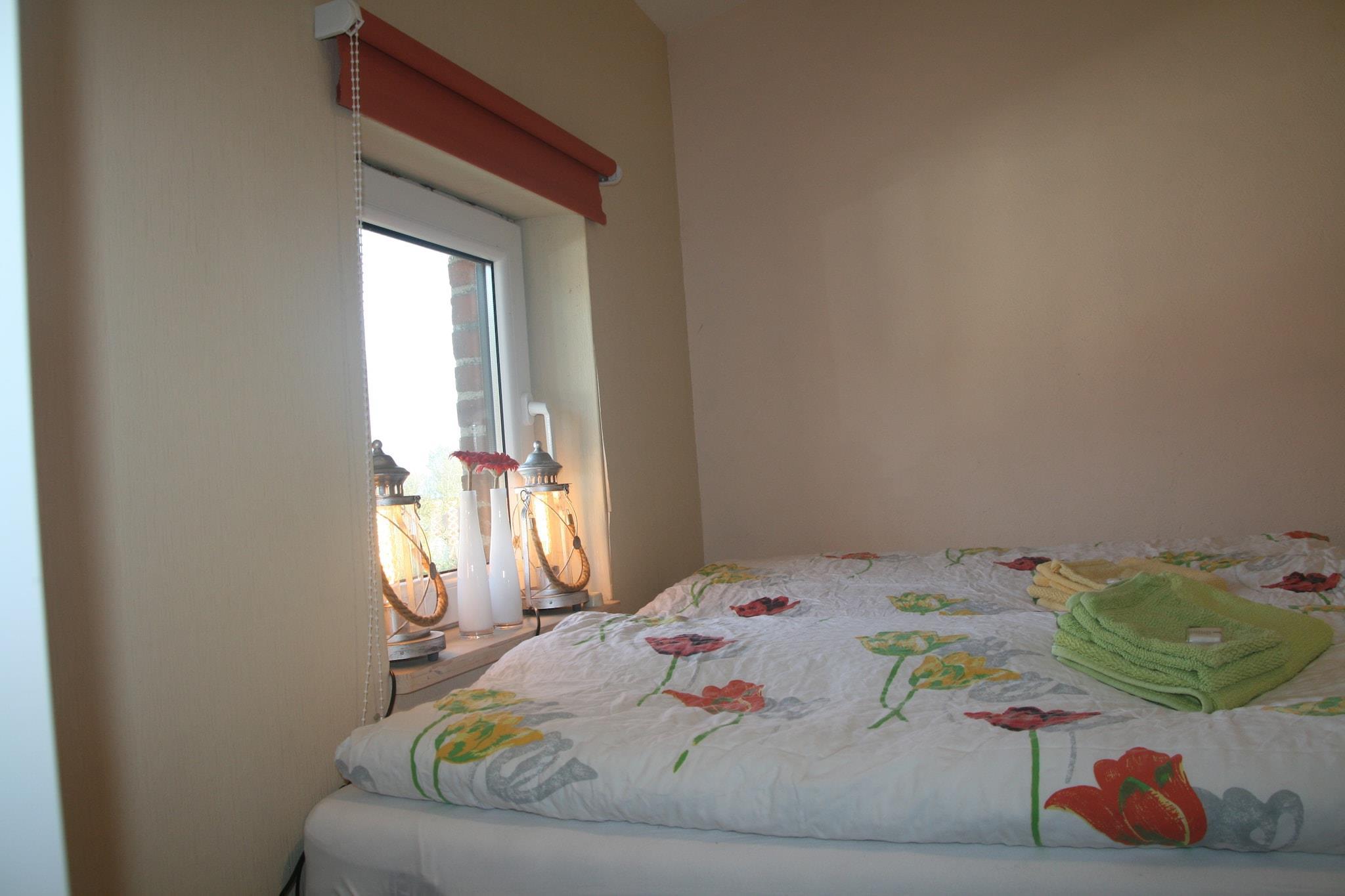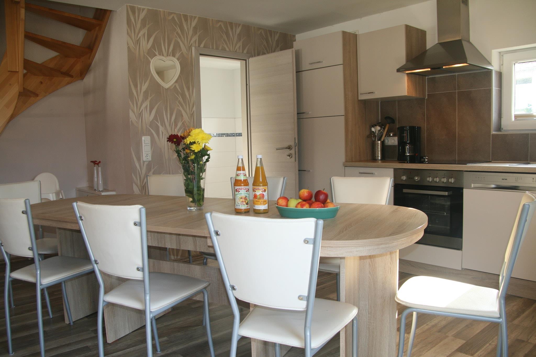 Ground floor: (Living room(double sofa bed, TV(flatscreen, satellite), dining table(10 persons), seating area), open kitchen(hob, electric kettle, coffee machine, oven, microwave, dishwasher, fridge-freezer), washbasin, toilet, washing machine, high chair) On the 1st floor: (bedroom(double bed(160 x 200 cm)), bedroom(double bed(160 x 200 cm)), bedroom(2x single bed), bathroom(shower, washbasin, toilet), children's bed) terrace, BBQ, parking, sand pit, play equipment, slide