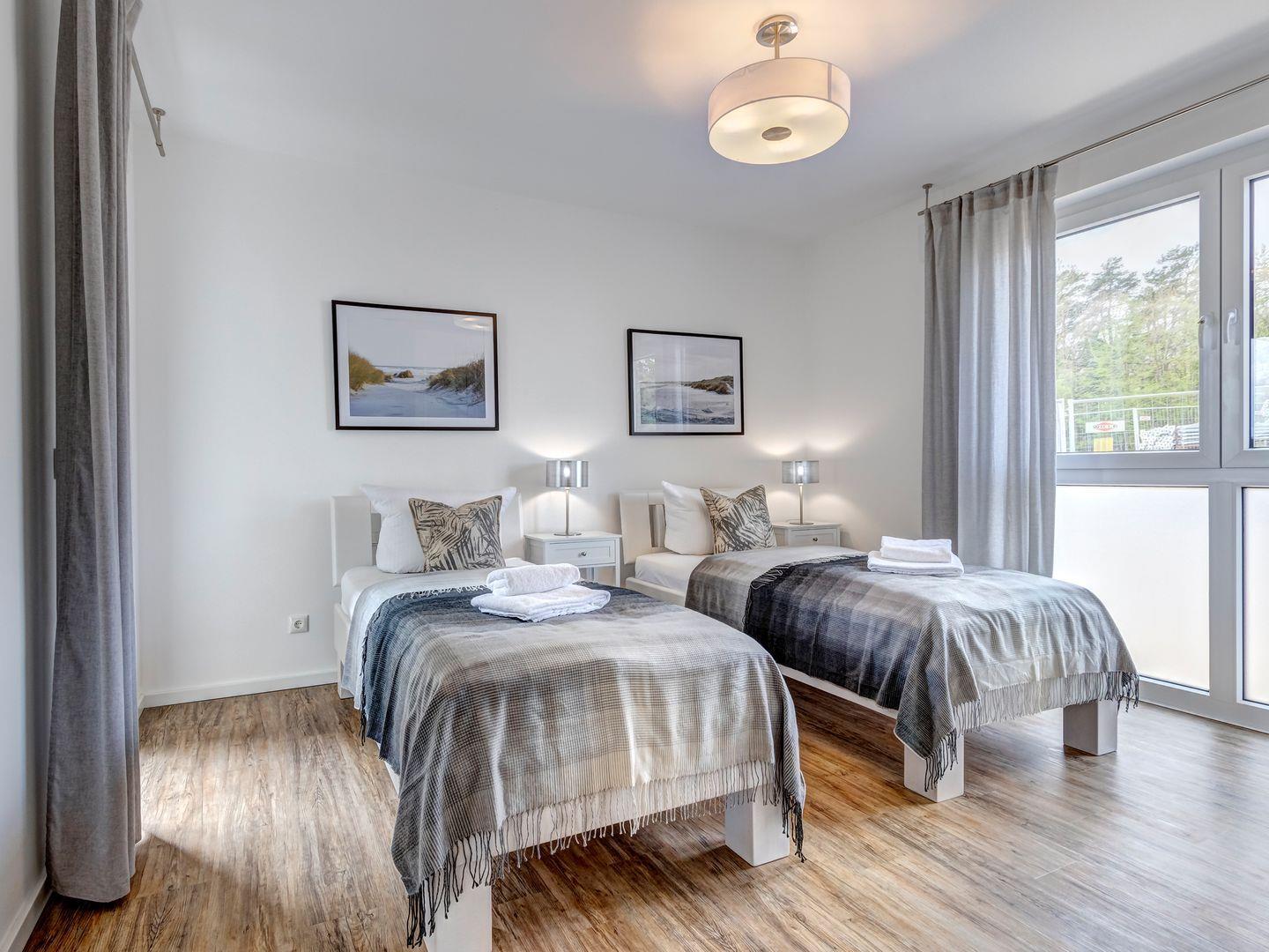 Das Appartement bietet zwei stilvolle Schlafzimmer: eines mit einem komfortablen Doppelbett und eines mit zwei Einzelbetten – ideal für bis zu 4 Personen oder eine Familie.