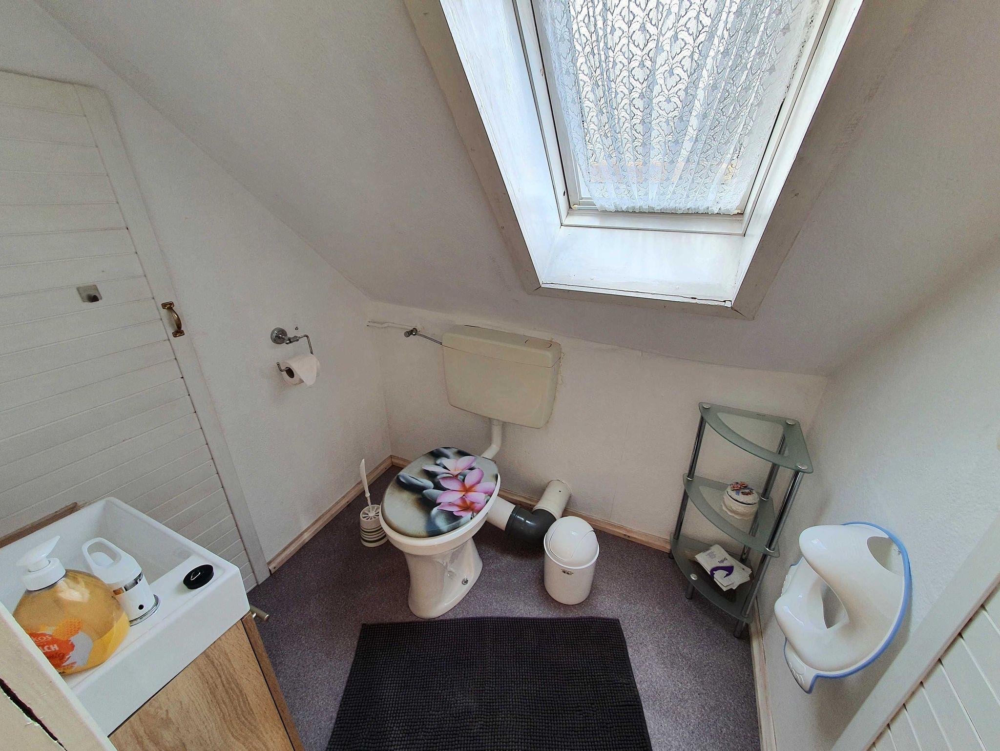 Die Dusche wurde 2021 komplett neu saniert. Die Toilette befindet sich in einem separaten Raum, getrennt von der Dusche.