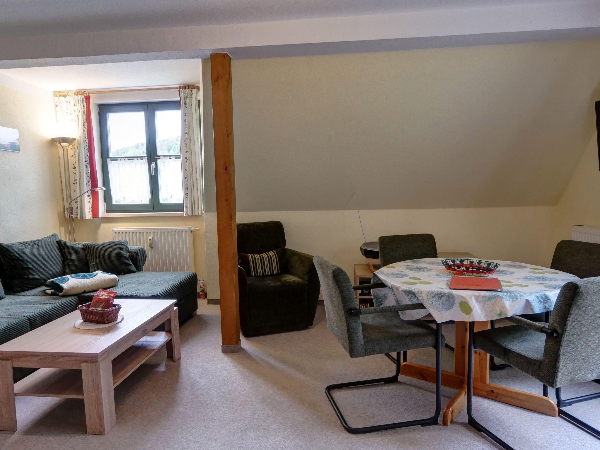 The holiday flat is ideally located close to the main attractions: The nearest village centre is just 200 metres away, where guests can explore local shops and cafés. Grocery shops can be found in the immediate vicinity (300 metres), making self-catering easy. The immediate surroundings, characterised by the Elbe Sandstone Mountains, valleys and the immediate vicinity of the forest, offer countless opportunities for outdoor activities and relaxed discovery tours.