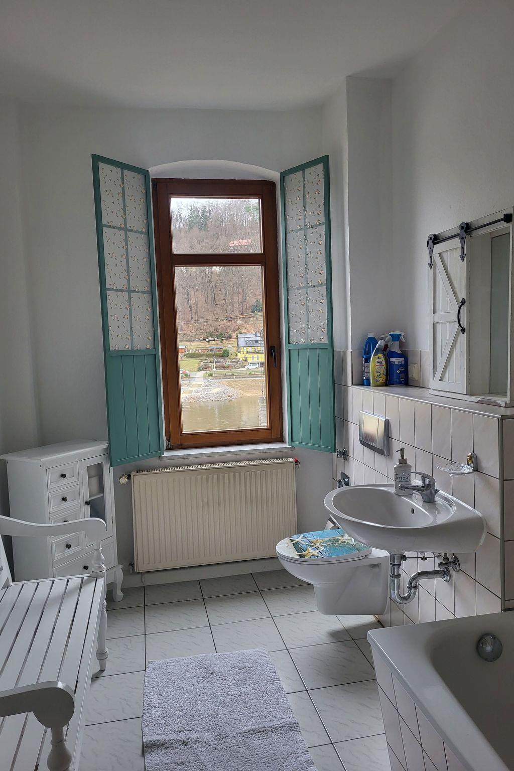 The flat's outdoor area promises relaxing moments with a view of the fascinating landscape of the Elbe Sandstone Mountains. The central location directly on the Elbe not only offers a picturesque backdrop, but also the perfect starting point for various outdoor leisure activities. Whether you want to take a leisurely stroll along the riverbank or make use of the nearby facilities such as boat and bike hire - everything is just a few steps away.