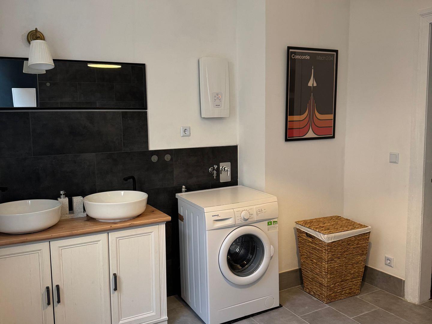 Im Appartement befinden sich zwei großzügige Badezimmer, die sowohl mit einer Badewanne als auch mit einer bodengleichen Dusche ausgestattet sind. Spiegel, Haartrockner, Fenster und weitere praktische Details wie Handtücher und Bettwäsche sind ebenfalls vorhanden. Sämtliche Wohnräume werden durch eine moderne Zentralheizung beheizt.