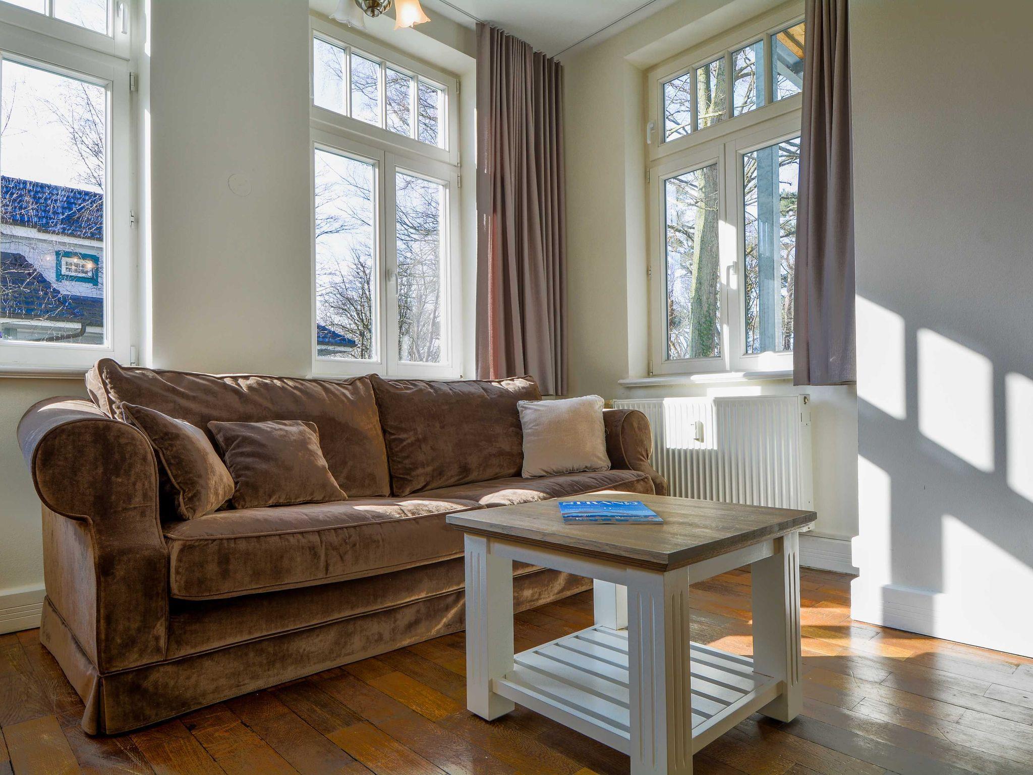 Herzlich willkommen in der Wohnung 3 in der Villa Waldburg. Die rustikal im Landhausstil eingerichtete 3-Raum-Ferienwohnung befindet sich im Erdgeschoss des Appartementhauses und bietet auf 87 qm reichlich Platz für bis zu 4 Personen. Mit einem Wohn- und Essbereich mit separierter Küchenzeile, einem Wintergarten, zwei Schlafzimmern einem Bad und Gäste-WC bietet die Wohnung den idealen Wohnkomfort für Ihren perfekten Ostseeurlaub. Die original erhaltenen Holzfußböden verleihen der Wohnung zudem eine warme und einladende Atmosphäre.