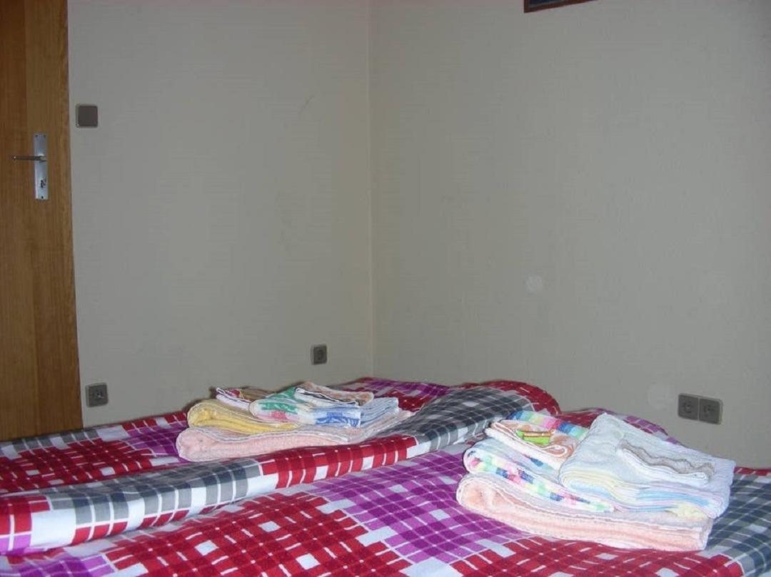 Im ersten Zimmer befinden sich zwei Betten (0.9x2m), sowie zwei Nachttische, ein Fernseher (Sat TV), ein kleiner Tisch mit 3 Stühlen und ein Schrank. Die beiden Betten können selbstverständlich zusammengestellt oder auseinander geschoben werden. Das entscheiden Sie, bzw. machen Sie sich wie es ihnen am angenehmsten ist. Die Wohnung ist mit WLAN abgedeckt.