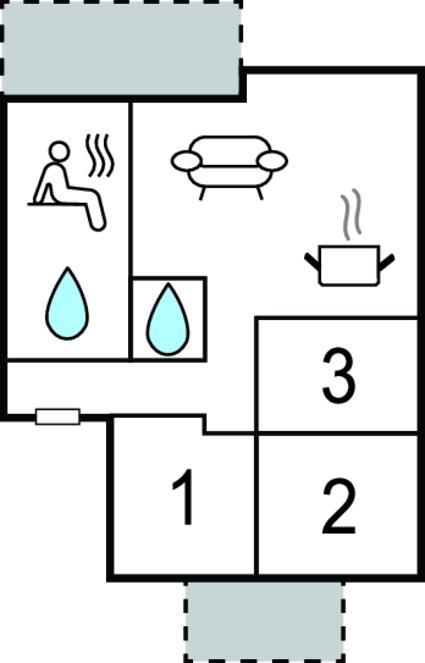 Badezimmer (nr. 1) - WC. Warmes und kaltes Wasser. Dusche
