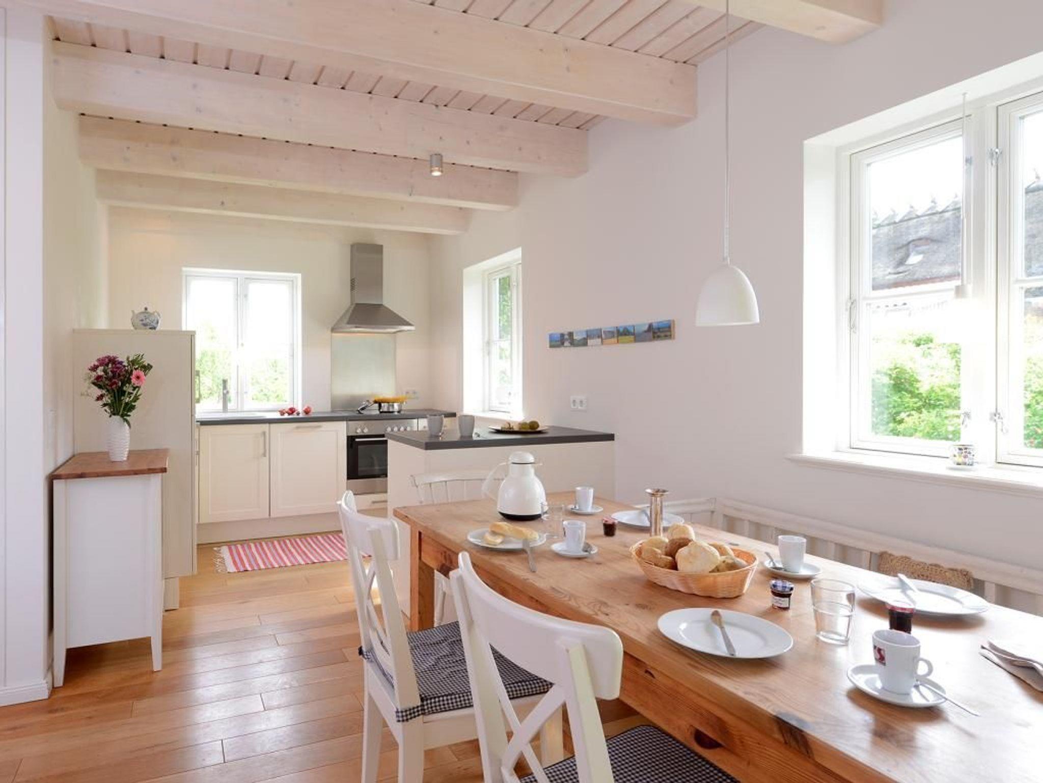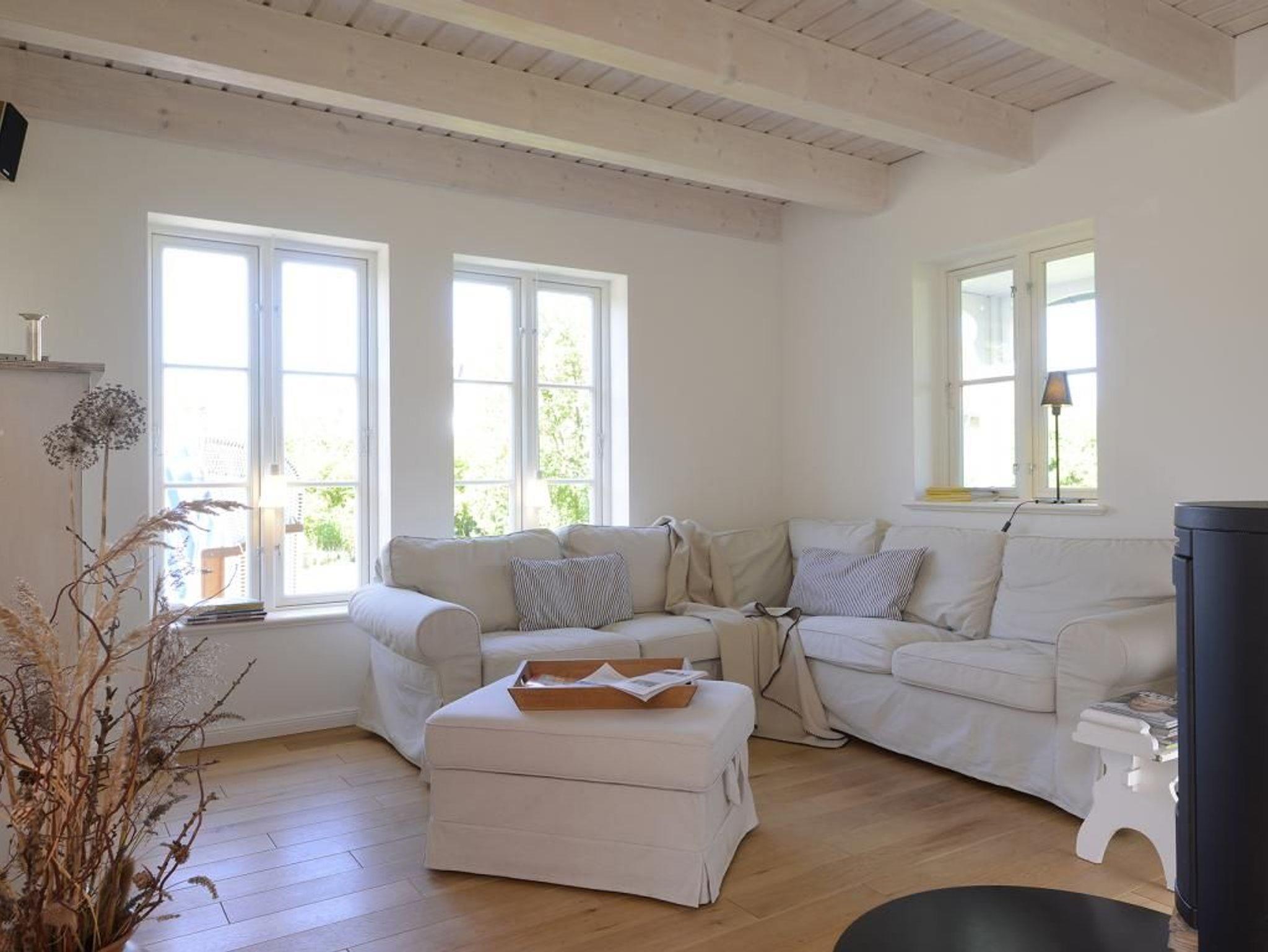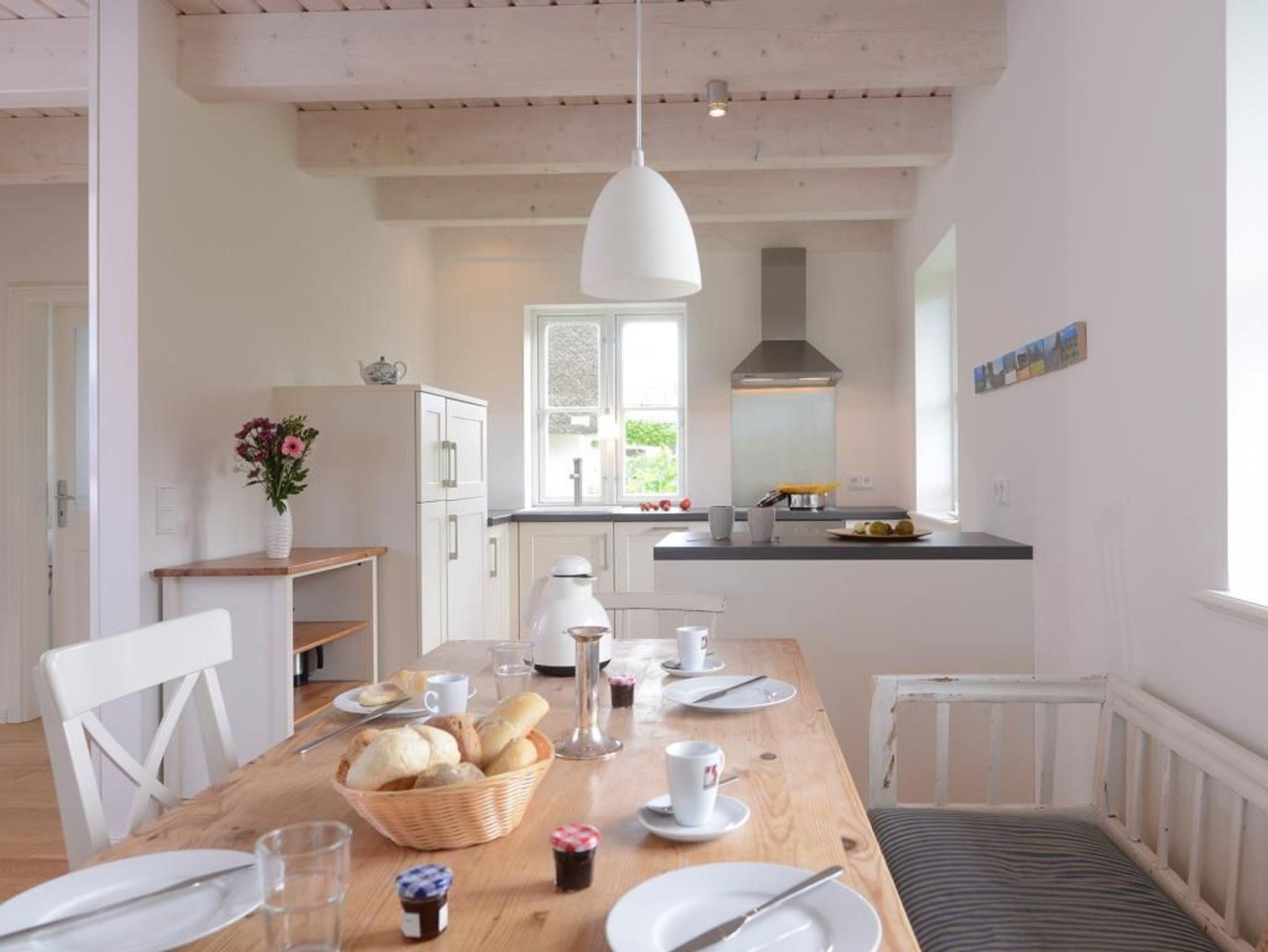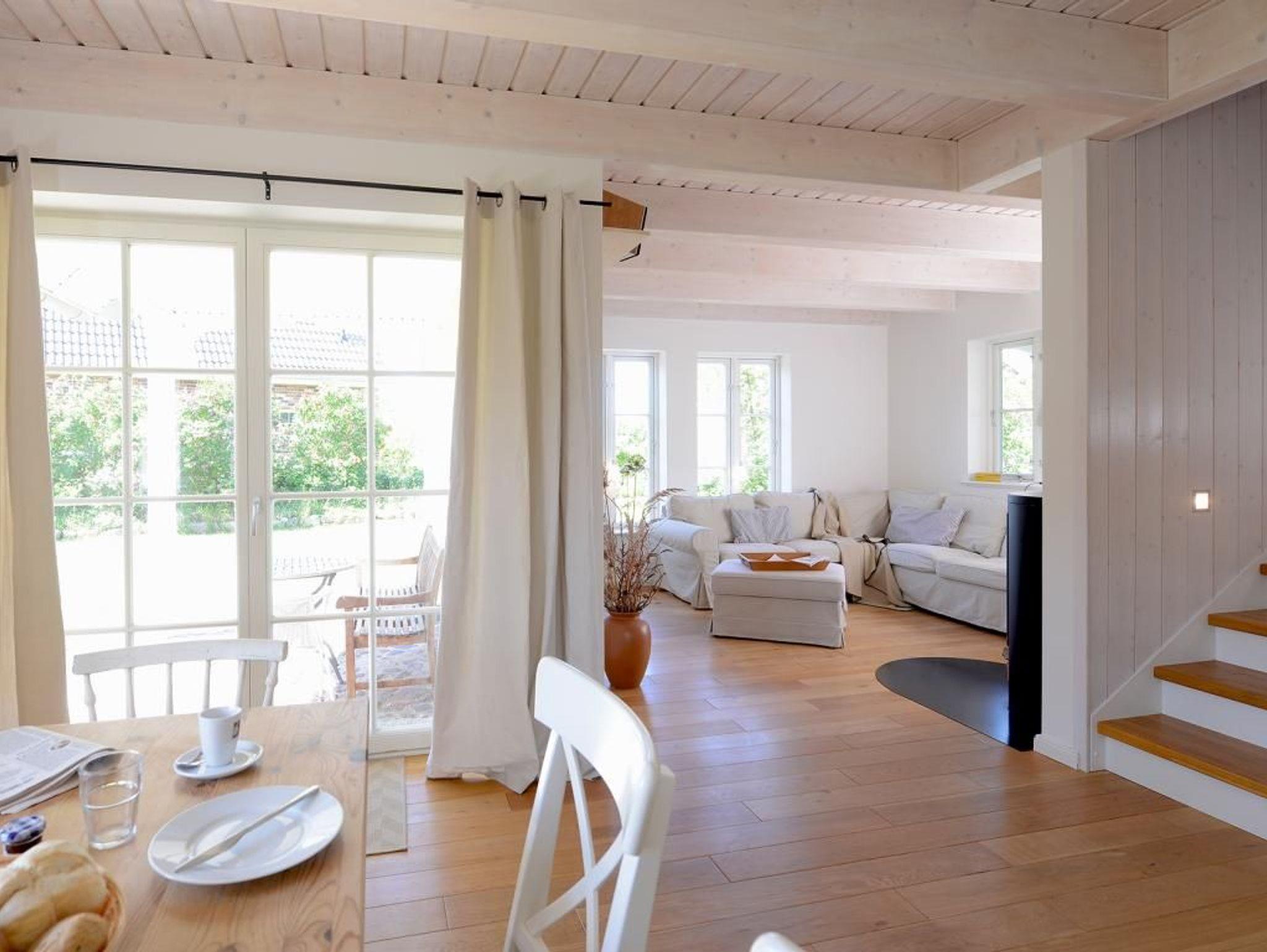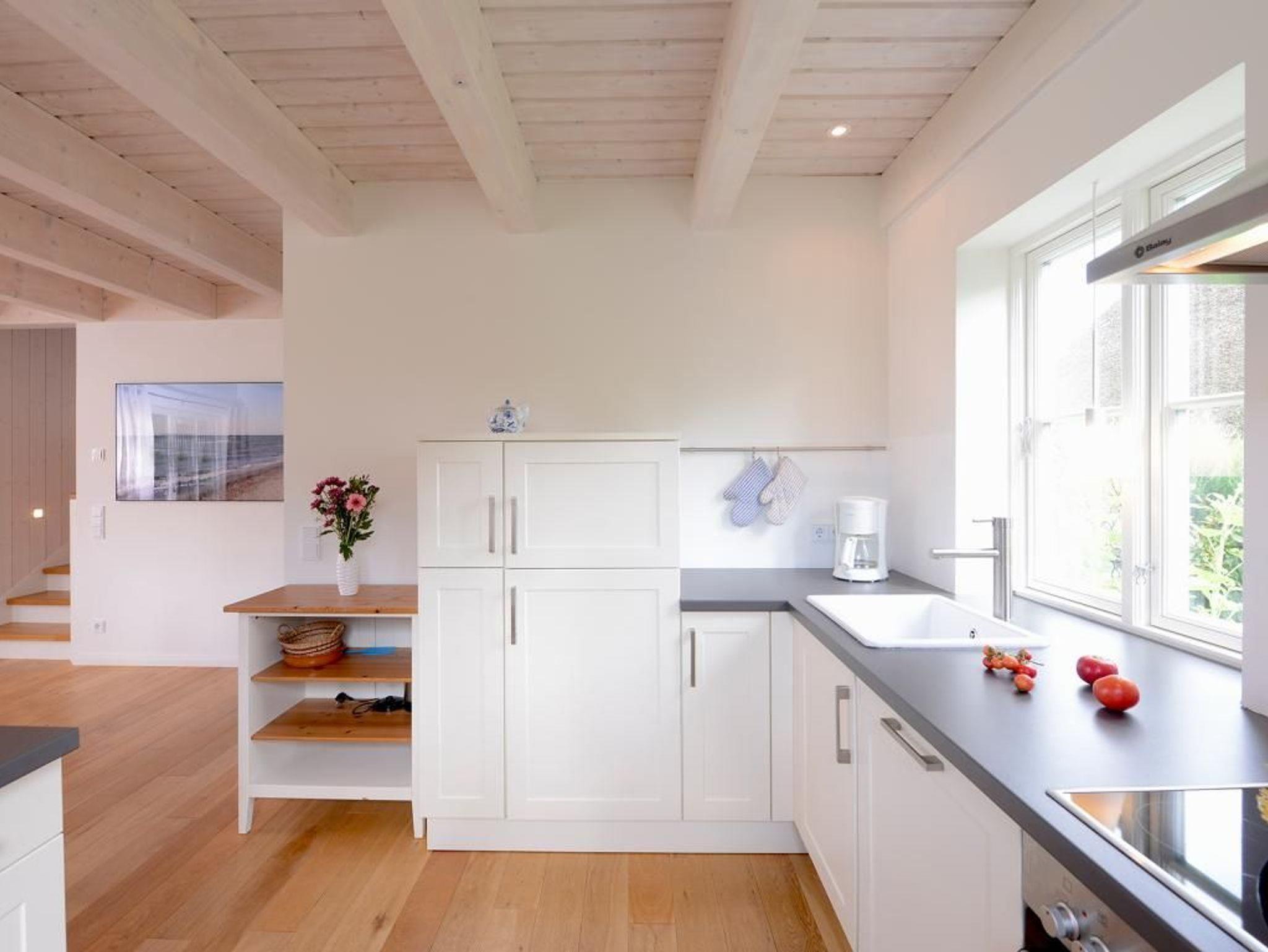 Mit bis zu 5 Personen verbringen Sie in diesem sehr behaglichen Feriendomizil mit Terrasse und Garten einen erholsamen Urlaub nur 500m zur Ostsee. Die gut durchdachte Wohnraumaufteilung mit einer Wohnfläche von 110qm ist unterteilt in einen großzügigen Wohn-/Essbereich mit einem bequemen Sofa, einem Esstisch, Kaminofen sowie komplett ausgestatteter Wohnküche mit Heißluftherd, Backofen, Dunstabzugshaube, Kühlschrank, Geschirrspüler. Im Wohnzimmer befinden sich selbstverständlich Digitales Fernsehen via DVB-S wie auch eine Stereoanlage, CD-Player. Im Obergeschoss des Hauses sind drei separate Schlafzimmer 1x Doppelbett, 1x Einzelbett, 1x Etagenbett. Auch ein Duschbad ist im Obergeschoss vorhanden. Im Haus steht außerdem ein Gäste- WC zur Verfügung und eine Waschmaschine können Sie kostenfrei nutzen. Für Familien mit Kindern bieten wir ein Kinderreisebett mit Matratze & Kinderhochstuhl kostenfrei. Alle Fußböden sind mit Holzdielen versehen, die Bäder sind gefliest und mit Fußbodenheizung ausgestattet. Bitte beachten Sie, dass Haustiere sowie Rauchen in diesem Ferienhaus nicht gestattet ist. Ein PKW Stellplatz befindet sich am Haus. Ihre mitgebrachten Fahrräder können Sie im zugehörigen Abstellschuppen unterbringen.