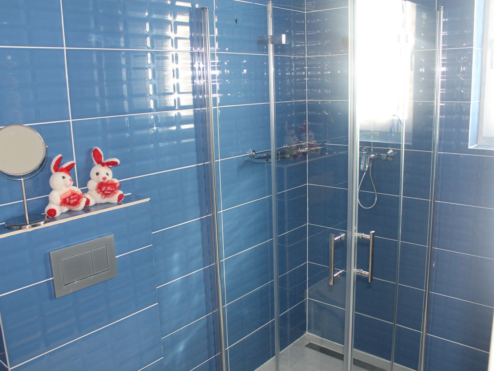 Eine Waschmaschine und ein Trockner stehen in der Diele zur Nutzung bereit. Die Ferienwohnung ist zudem ausgestattet mit zwei Bädern und einem einladenden Balkon mit schöner Aussicht auf die Juralandschaft.