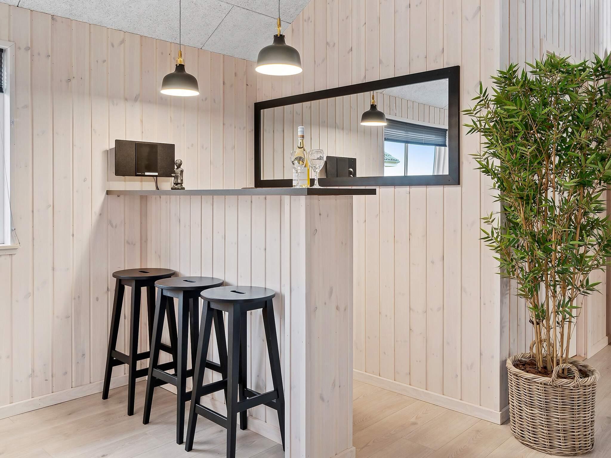 auf den Barhockern, bei einem Drink und munteren Gesprächen, gemütlich