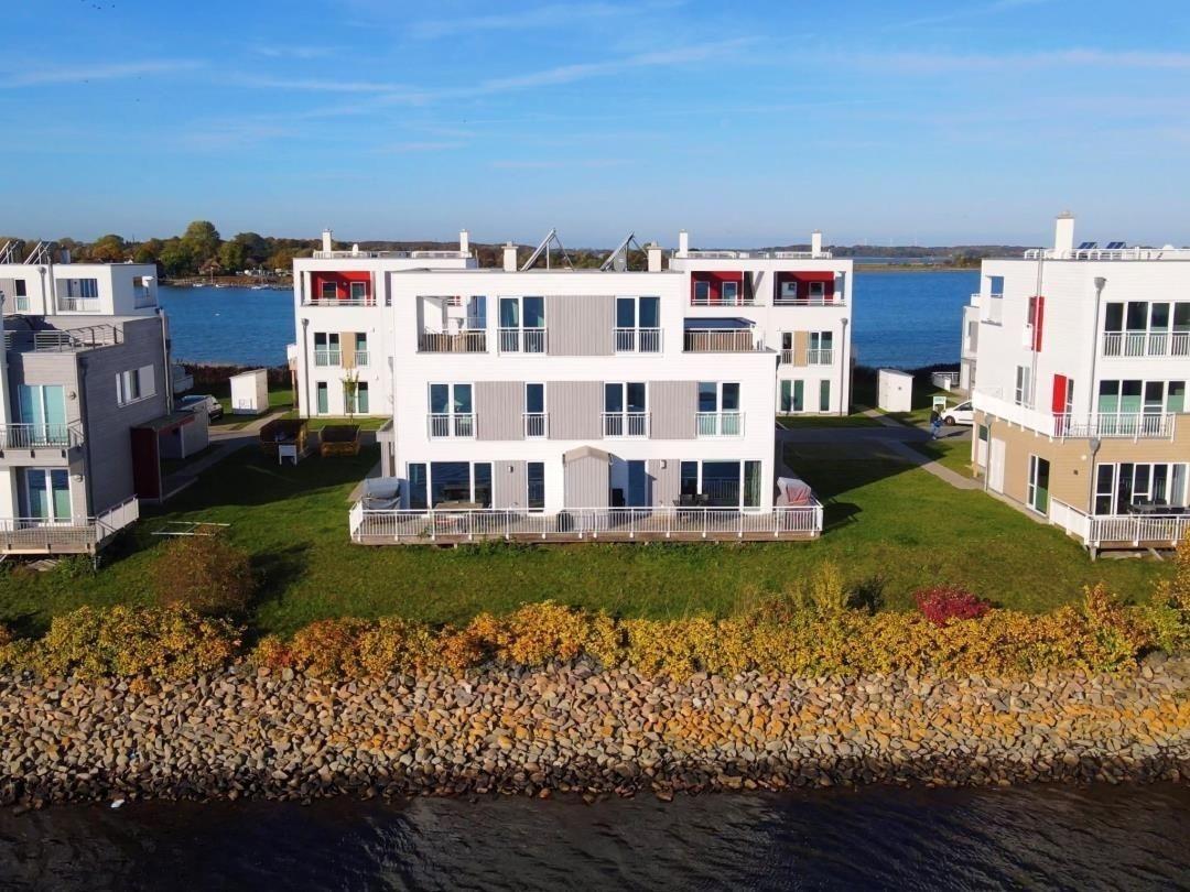 Einzigartiger Lage im OstseeResorts zwischen Schlei und Hafen, Dachterrasse, Kamin, Sauna, Badewanne mit Whirlpoolfunktionen.