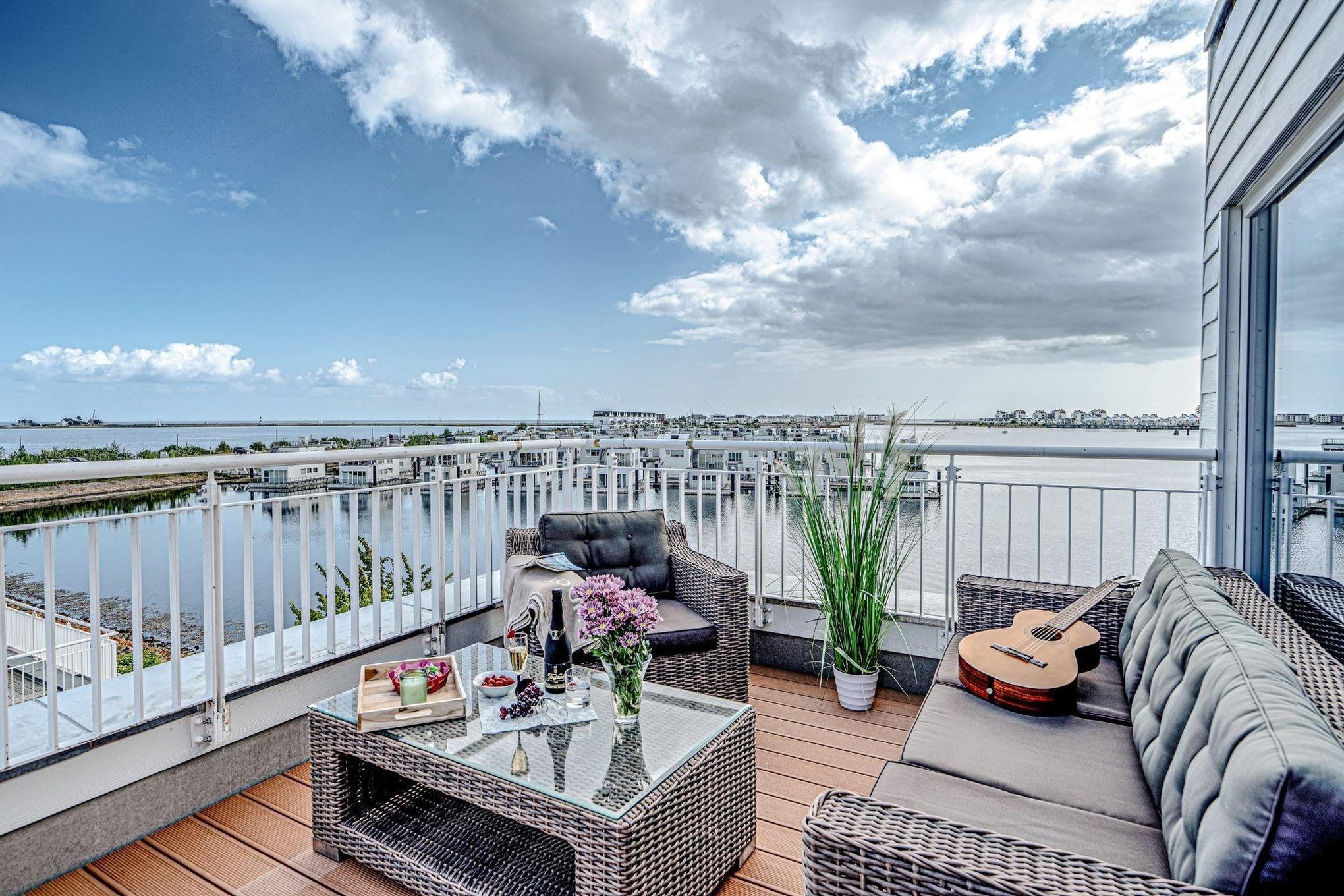 Terrasse und Dachterrasse mit faszinierendem Weitblick auf Hafen, Schlei und Ostsee!