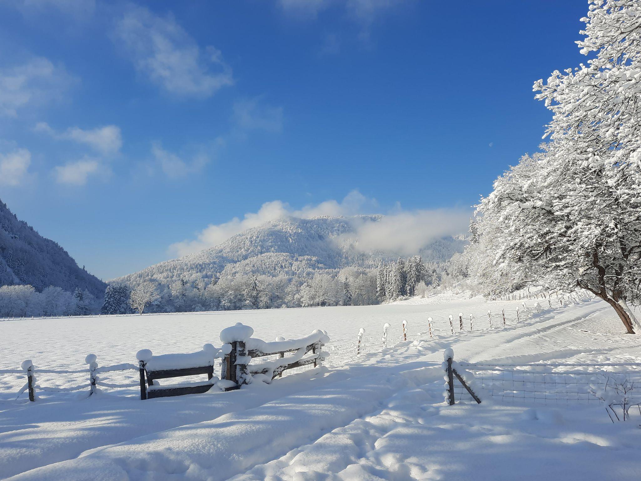 Die Ferienwohnung liegt etwa 2,5 km außerhalb des Ortskerns von Kiefersfelden in idyllischer, ländlich ruhiger Lage. Die Unterkunft, im Zuhaus eines Bauernhofes mit Mutterkuhhaltung, Schafen und Hühnern, verfügt über einen eigenen Zugang. Unseren Gästen steht eine eigene Terrasse zur Verfügung mit idyllischem Panoramablick in die freie Natur.