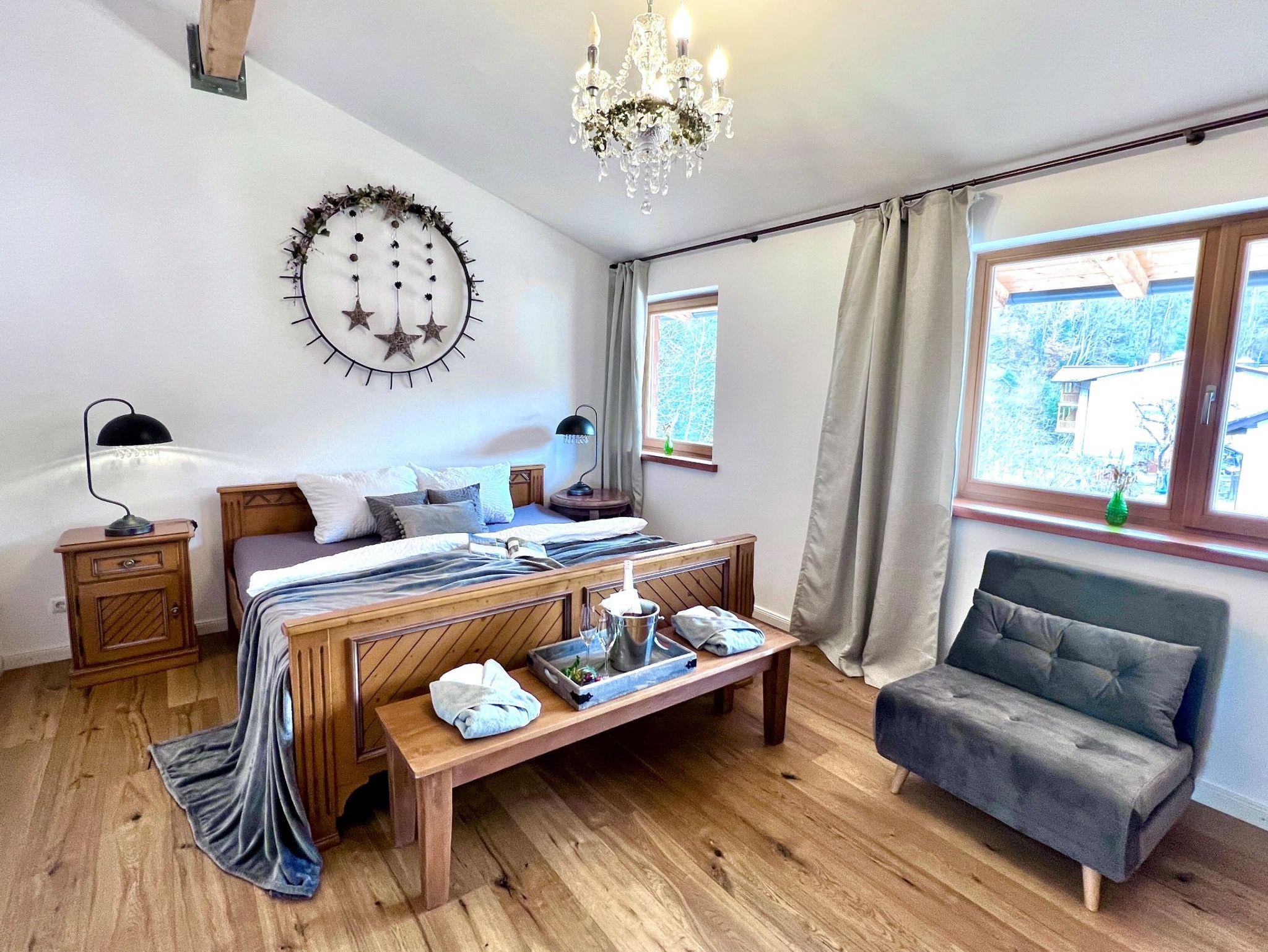 Wir haben eine großzügige Wohnung, die durch ihre zentrale und gleichzeitig naturnahe Lage als Top-Angebot für Alltag und Freizeit in allen Bereichen punktet. Planen Sie einen Skiurlaub mit Freunden oder Wanderurlaub mit der befreundeten Familie oder mit den Großeltern – hier in den Bergen und am Wasser, in unserem liebevollen Alpen-Domizil, findet ein jeder Abstand vom hektischen Alltag. Im Winter auf die Skipisten oder die Loipe starten oder daheim mit Bergblick entspannen. Das Ferienhaus hat zwei Ferienwohnungen mit separatem Eingang. Eine Ferienwohnung mit 150m² mit großem Balkon mit Panoramablick befindet sich im Obergeschossun d eine Ferienwohnung mit 140m² mit Terasse und Bachblick befindet sich im Erdgeschoss.