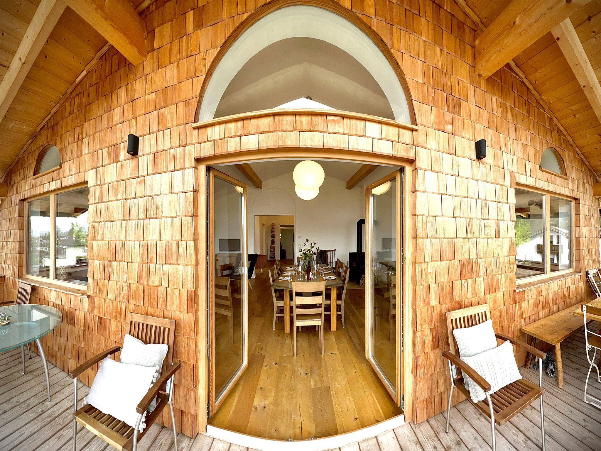 Im Sommer lädt der großzügig, überdachte Balkon mit einem herrlichen Panoramablick zum Entspannen ein. Nehmen Sie dort gemütlich im Schatten ihren Nachmittagskaffee ein und freuen Sie sich, wenn Sie auf den Kieferbach Enten oder Fische vorbeischwimmen sehen. Auch am Abend lässt sich dort, nach einer anstrengenden Bergtour oder einem entspannten Badetag, bei einem Glas Wein der Tag gemeinsam beenden und das Glitzern des Wassers und der Sterne genießen.