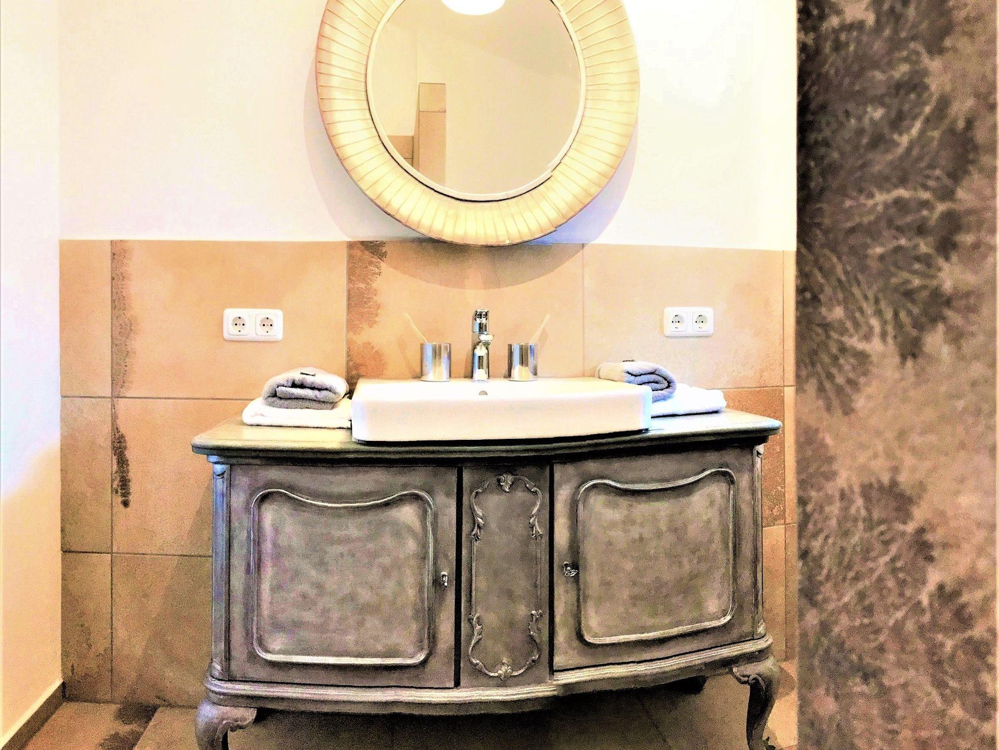 Bei Bedarf können ein Gitterbett sowie 2 Zusatzmatratzen zur Verfügung gestellt werden. Ein Bad ist mit ebenerdiger Dusche und WC, das zweite Bad ist mit einer Badewanne und WC ausgestattet. Beide Bäder verfügen über Fenster und eine automatische Raumlüftungsanlage.Zudem steht Ihnen eine kostenfreie LAN sowie WLAN-Verbindung mit Fritzbox zur Verfügung (50MBit/s).