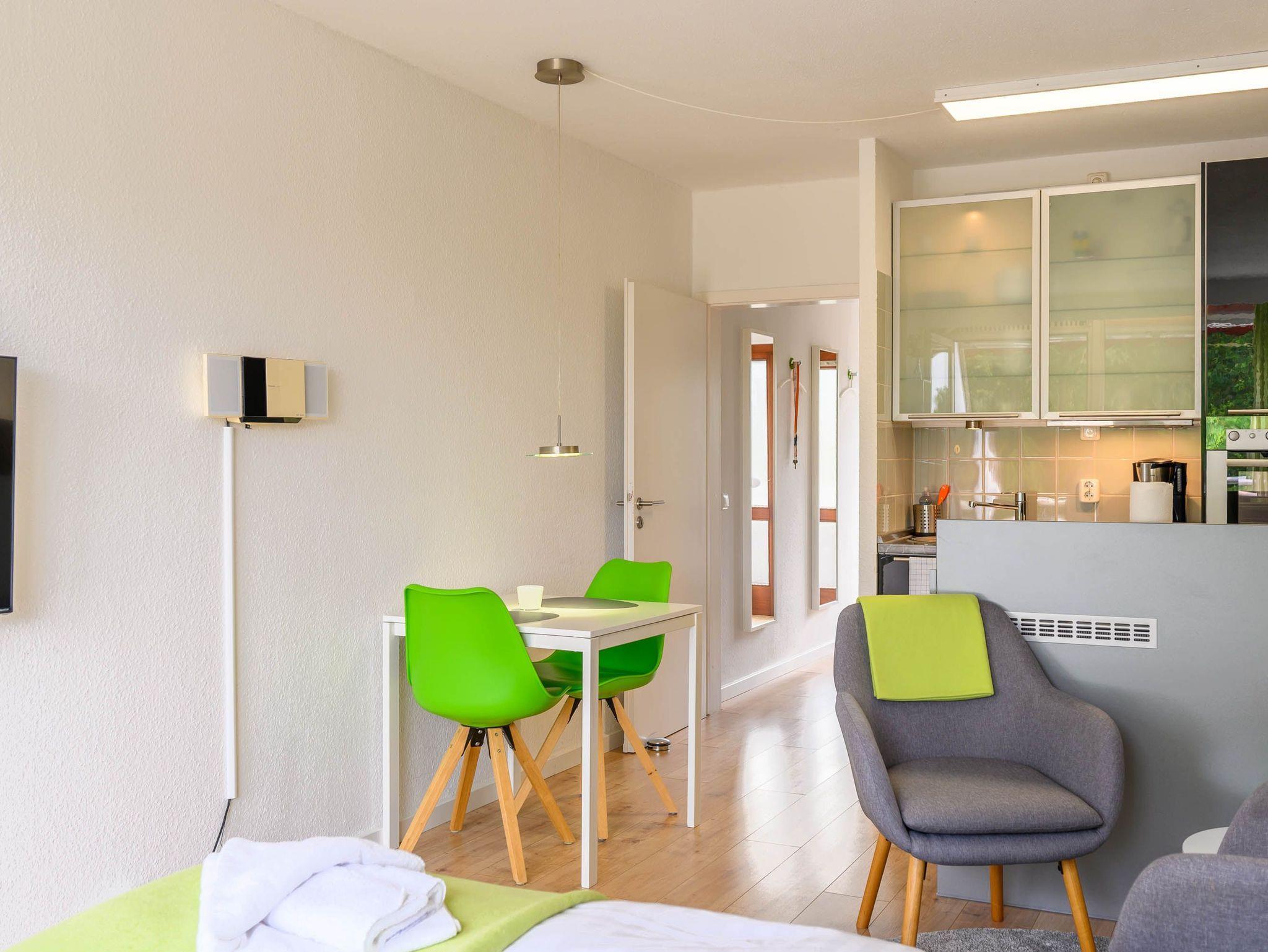 Der Froschkönig ist ein 1 Zimmer-Appartment mit 32qm Wohnfläche. Die Wohnung befindet sich in der 3. Etage (ohne Fahrstuhl) und ist zur Sonnenseite ausgerichtet. In der Ferienwohnung finden sich, thematisch passend zum Namen des Apartments, grüne Farbakzente. Die liebevolle Einrichtung verzaubert die Wohnung in einen gemütlichen Rückzugsort.