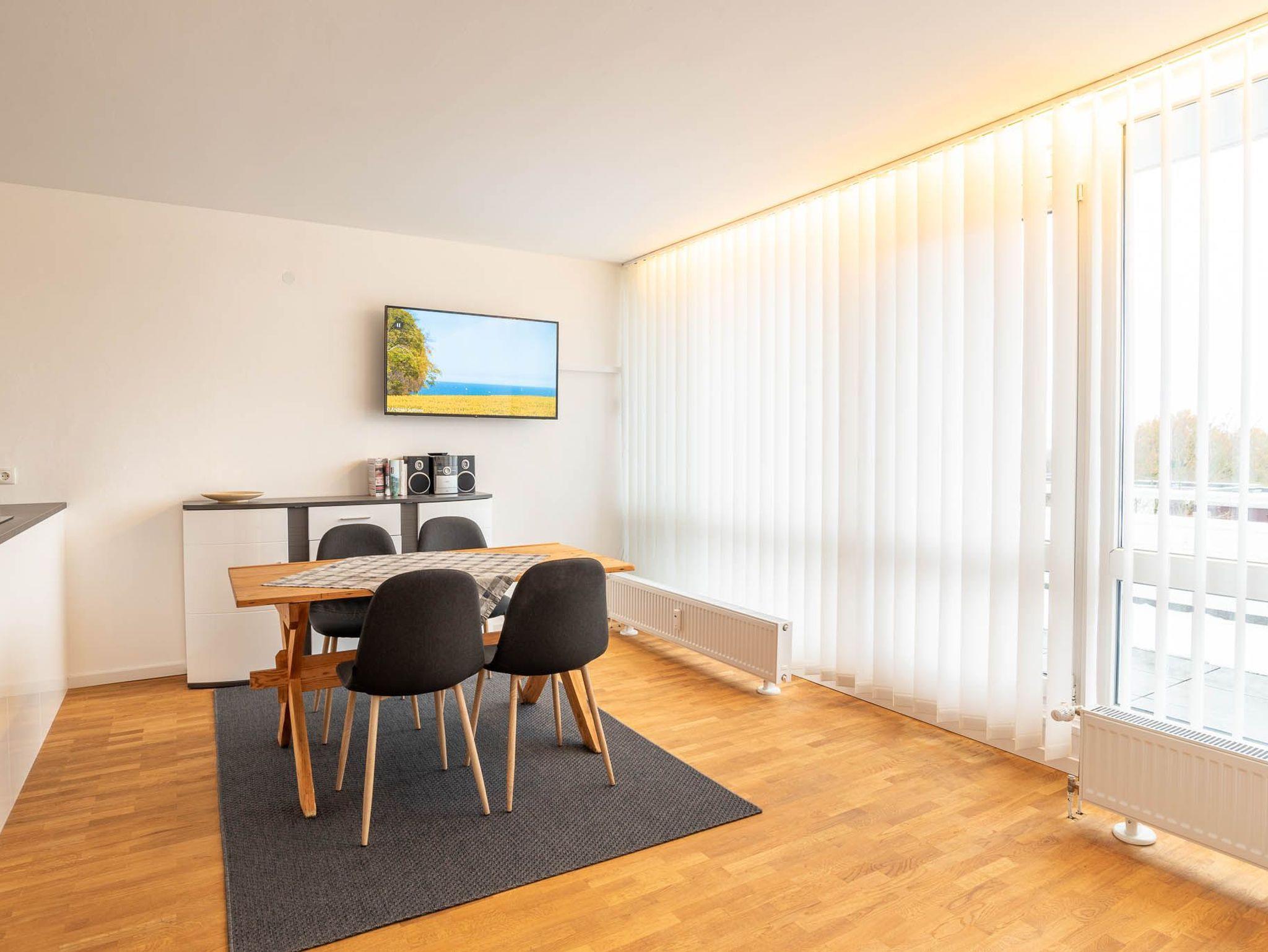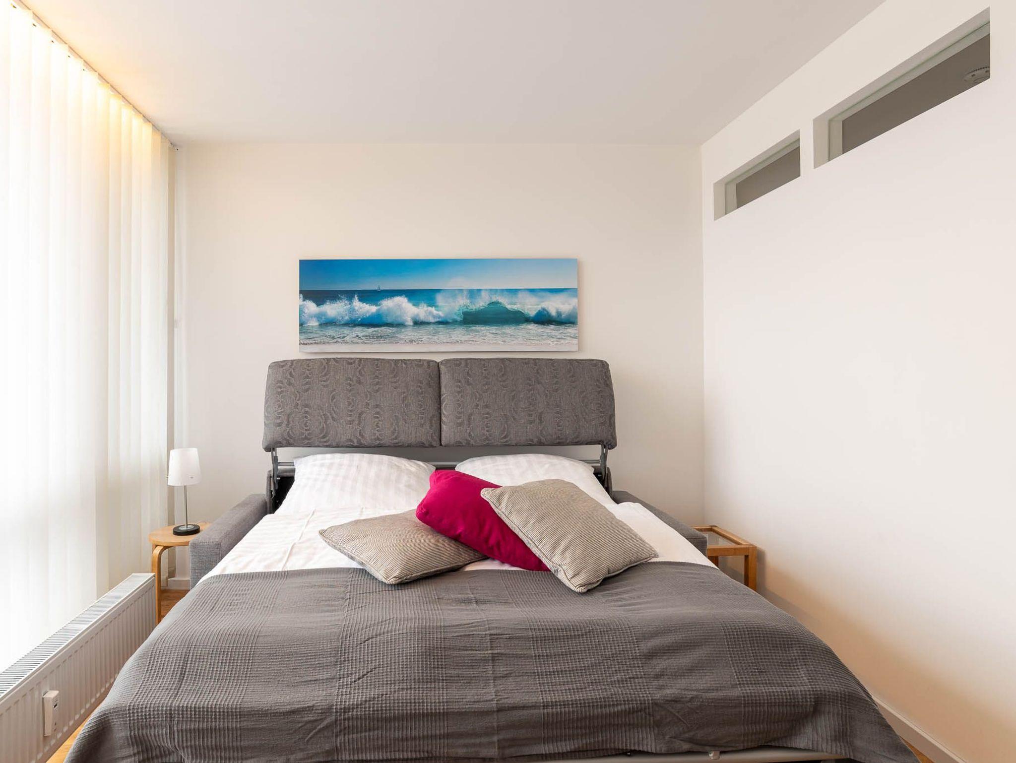 (Kurze) Auszeit am Meer. Die bodentiefe Fensterfront lässt die 1,5 Zimmer-Wohnung hell erstrahlen. Sie bietet Platz für bis zu 3 Personen.