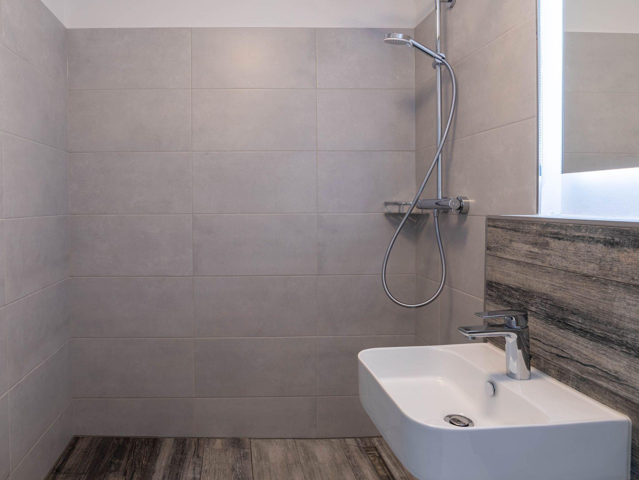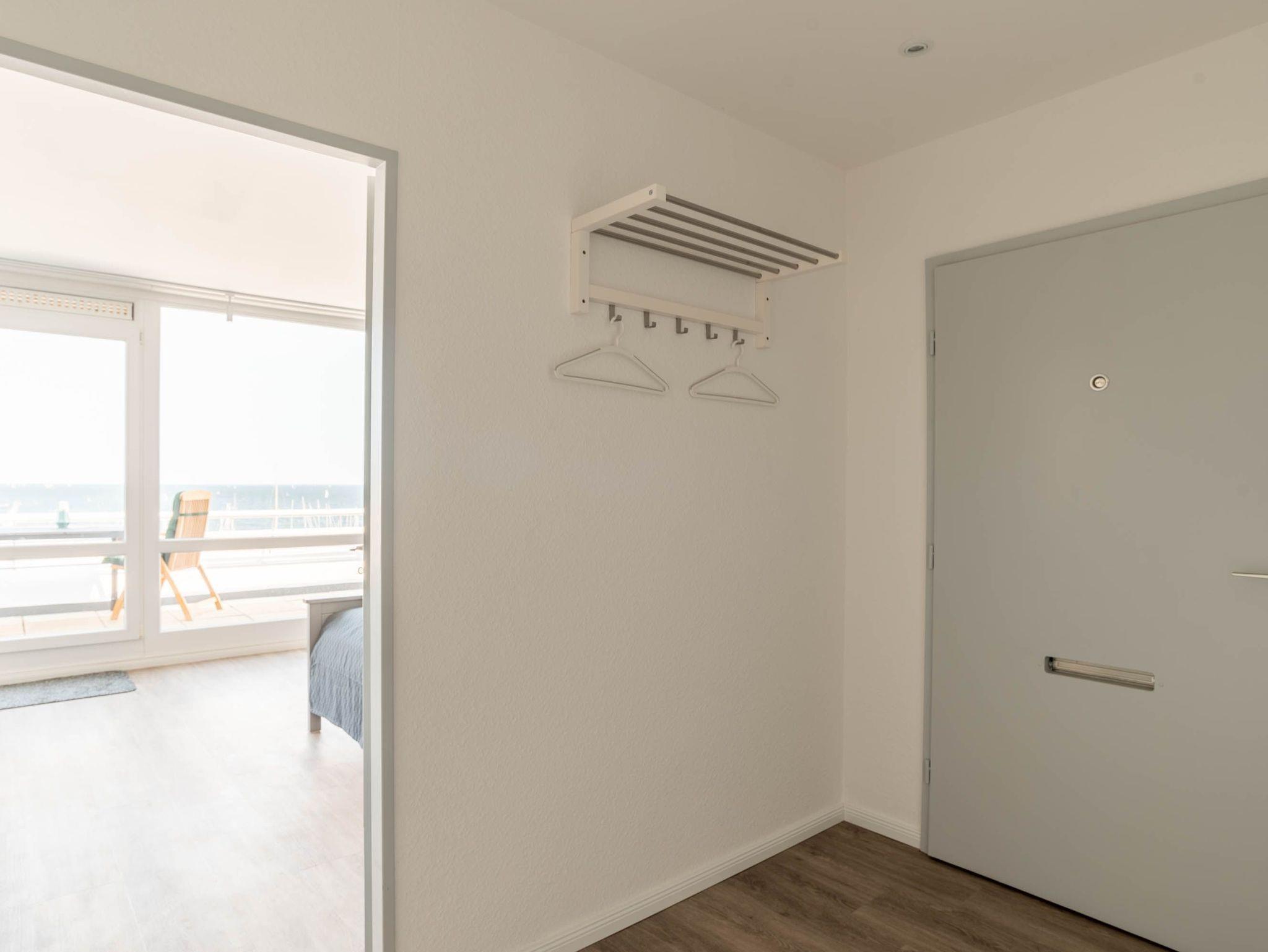 Das Appartment wurde mit viel Liebe zum Detail eingerichtet. Schon der große Eingangsbereich lädt ein sich direkt wie zu Hause zu fühlen. Ein Kleiderschrank und die Flurgarderobe bieten ausreichend Verstau- und Ablagemöglichkeiten. Es erwartet Sie vom Flur ausgehend ein helles, modernes Badezimmer mit großer Dusche. Durch den Flur gelangen Sie in das Wohn- und Schlafzimmer. Gleich am Eingang des Zimmers hat man einen atemberaubenden Blick auf den Hafen und Strand, welcher den Namen der Ferienwohnung alle Ehre macht.