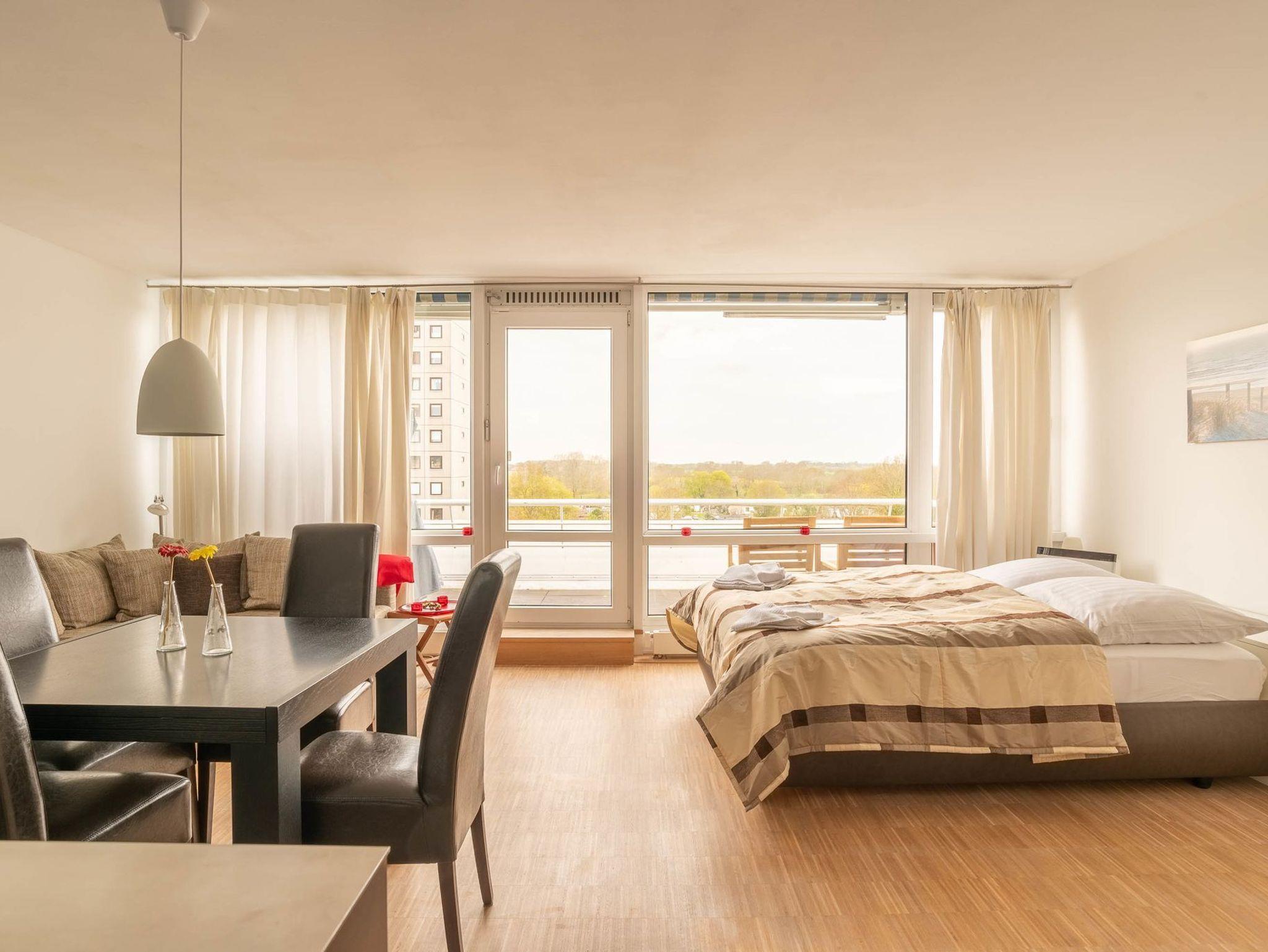 Sonne pur. Die bodentiefe Fensterfront lässt die 1 Zimmer-Wohnung hell erstrahlen. Sie bietet Platz für bis zu 3 Personen.