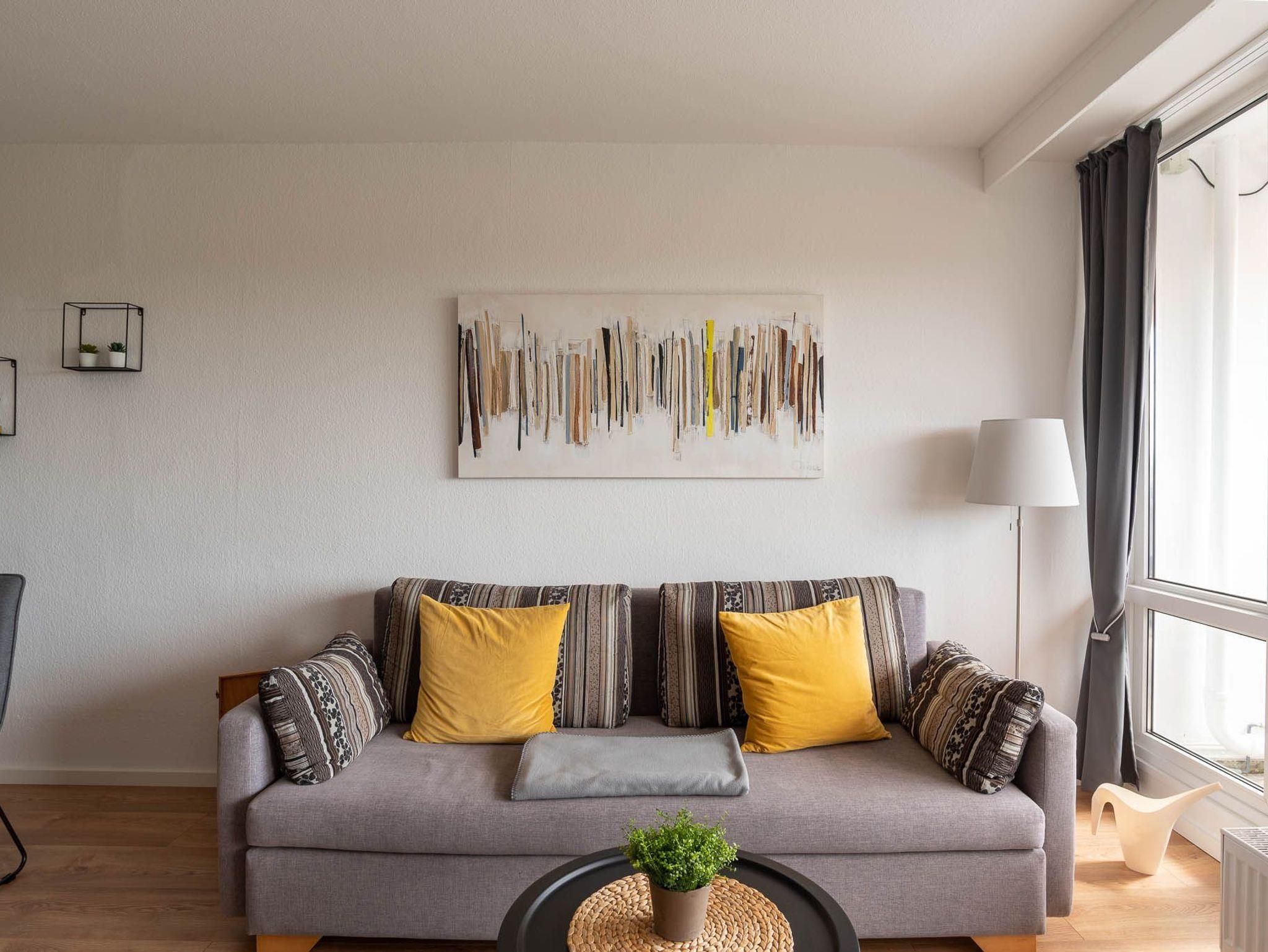 Das Wohnzimmer verfügt mit seiner ausziehbaren und geräumigen Schlafcouch eine komfortable Schlafgelegenheit für zwei weitere Personen. Die Wohnung verfügt zudem über WLAN.