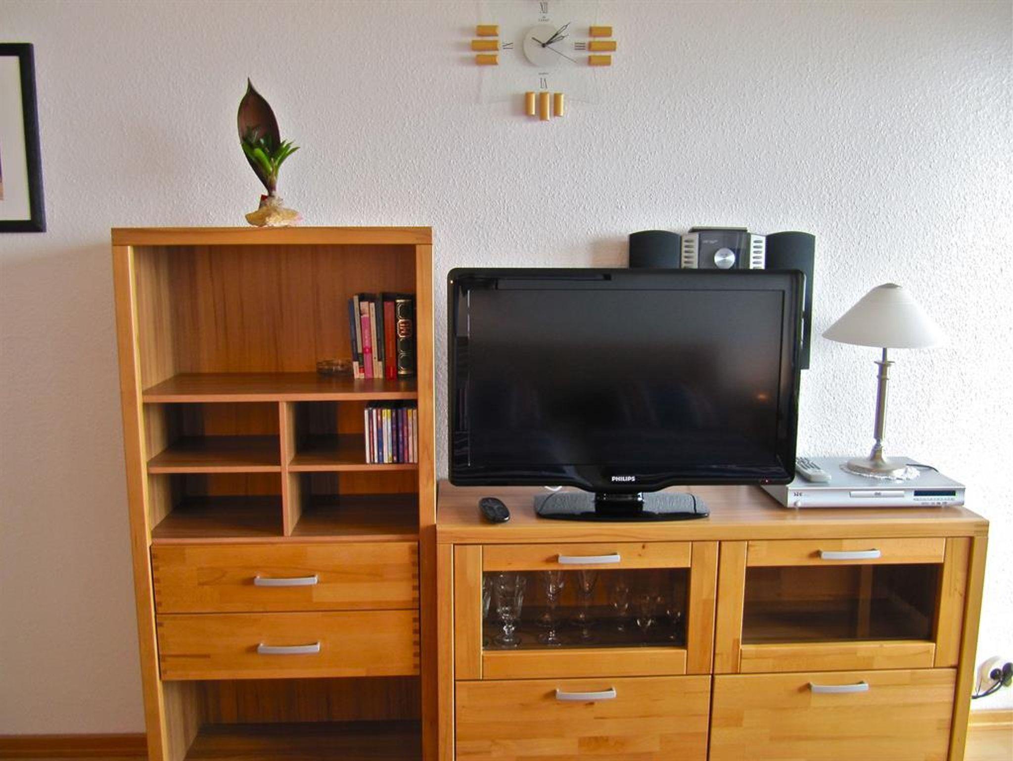 Das Appartement ( 28 Quadratmeter ) wurde aufwändig renoviert und verfügt über eine sehr geschmackvolle Einrichtung wie folgt: Im Wohn-Schlafraum befindet sich ein großes Doppelbett (180cm x 200cm ) mit Esstisch, zwei Sesseln, Wohnwand mit Flachbild-TV, DVD-Player und Stereoanlage. das Appartement ist neu und modern mit Kernbucheholzmöbeln, Küchenzeile mit kleinem Backofen, Cerankochfeld und Mikrowelle,Kaffeemaschine, Wasserkocher, Toaster, Laminatböden , Flureinbauschrank und ansprechendem Duschbad eingerichtet. Von der gepflegten Loggia mit Gartenmöbeln haben Sie den direkten und freien Blick auf die Ostsee und geniessen ab Sonnenaufgang bis zum Mittag die Sonne. Wir empfehlen das gemütliche , ausgedehnte Frühstück auf dem Balkon, danach erholen Sie sich im Strandkorb am Meer.