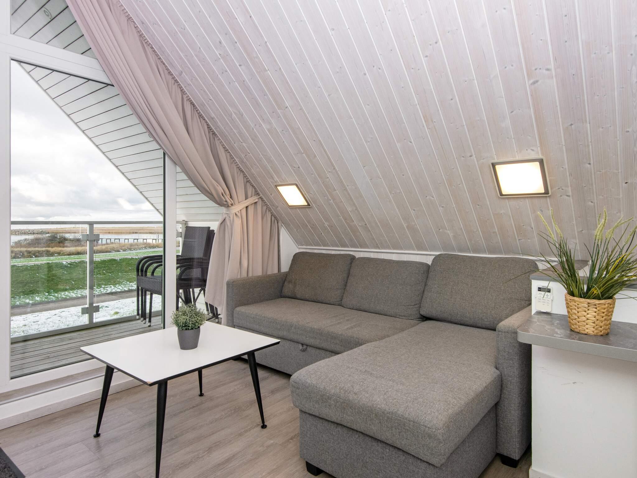 Der kombinierte Küchen-/Aufenthaltsbereich befindet sich im 1. Stock. Die Küche ist reichhaltig ausgestattet u.a. mit einer Kapsel- und einer Filterkaffemaschine. Von hier aus haben Sie einen herrlichen Blick auf das Meer und die Umgebung. Hier erwartet Sie auch eine Loggia, wo Sie laue Sommerabende und den Panoramablick auf den Deich und den dahinter liegenden Strand genießen können. Nutzen Sie das Fernglas, um den Schiffsverkehr und die herrliche Natur zu beobachten. Eine digitale Wetterstation zeigt Ihnen die aktuelle und kommende Wetterlage an.