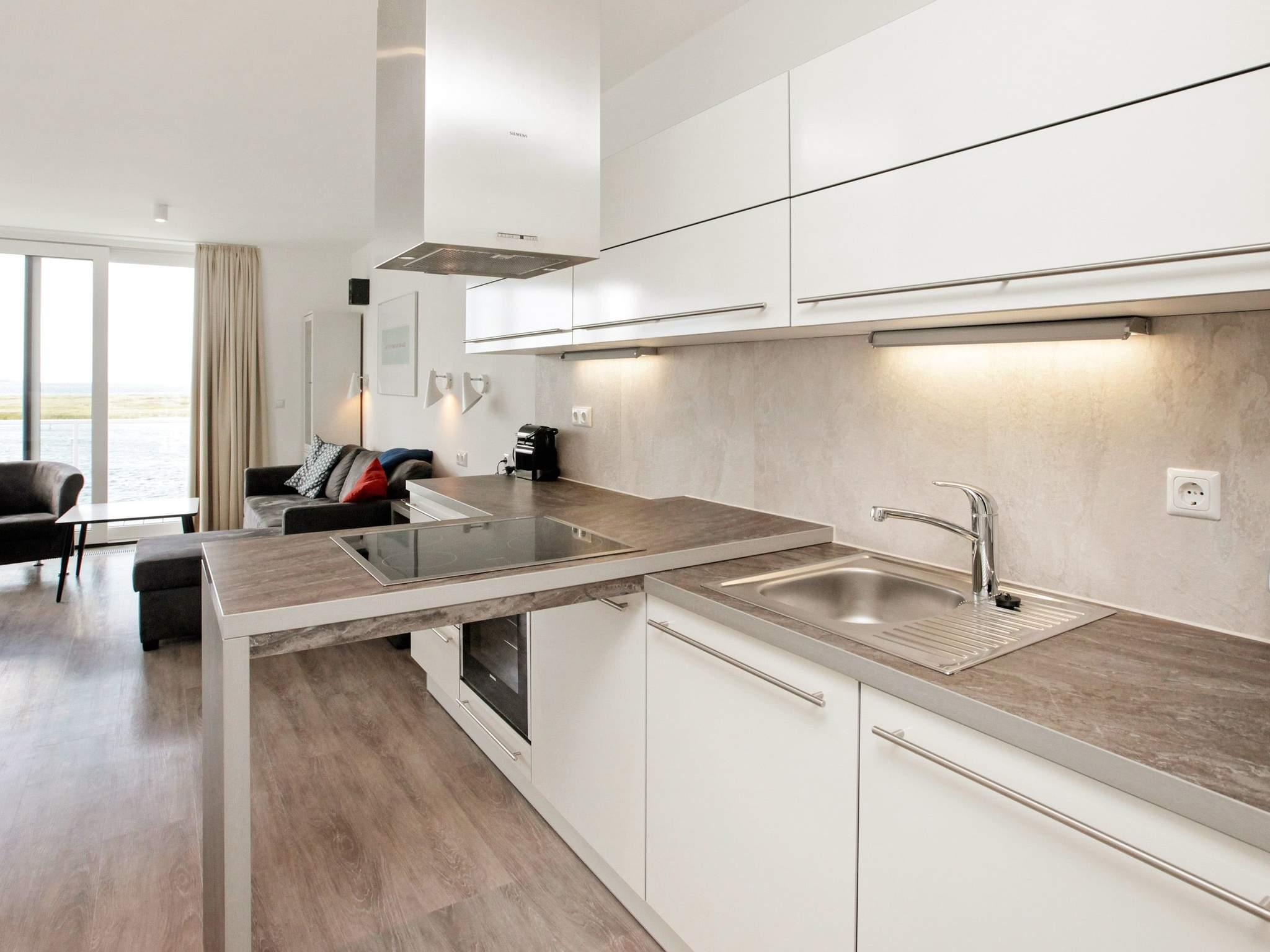 Lassen Sie sich von der maritimen Atmosphäre einnehmen, wenn Sie am Hafen flanieren, oder genießen Sie die Abendstimmung von Ihrem Balkon aus, sofern Sie es nicht bevorzugen die Aussicht vom Wohnzimmer aus zu erleben, während die Flammen des Bio-Kamins Wärme, Gemütlichkeit und Ferienstimmung verbreiten. Die Einrichtung kann variieren, u.a. gibt es unterschiedliche Typen von Kaffeemaschinen in den Häusern.