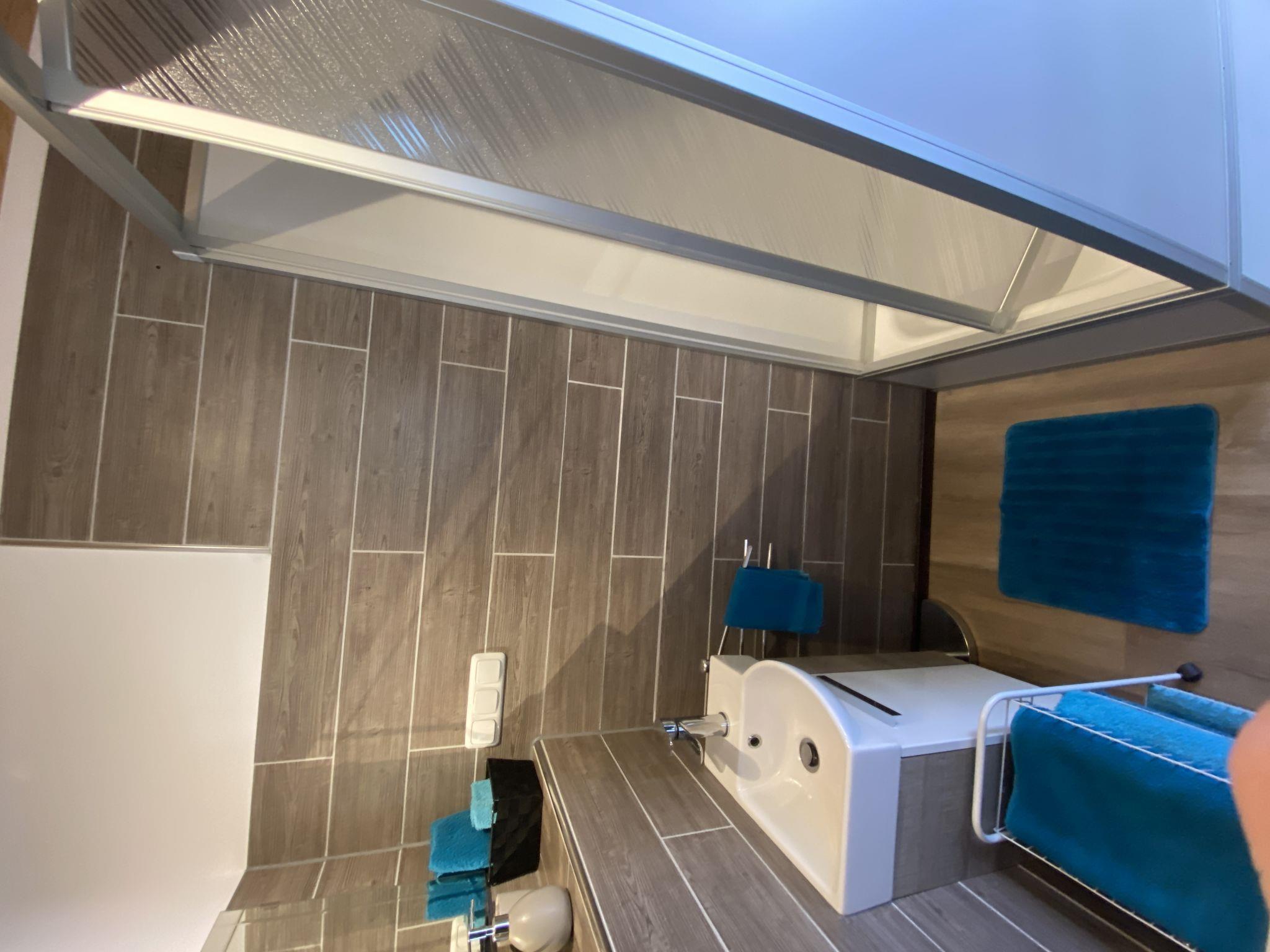 2-room house 43 m2. Renovated in 2017, modern furnishings: living/dining room with Scandinavian wood stove, dining table, bar and satellite TV. Exit to the terrace. 1 room with 1 double bed. Open kitchen (oven, dishwasher, 4 ceramic glass hob hotplates, toaster, kettle). Shower/WC. Electric heating. Terrace roofed. Terrace furniture, barbecue, deck chairs (2). Please note: smoke alarm. outdoor sauna barrel.