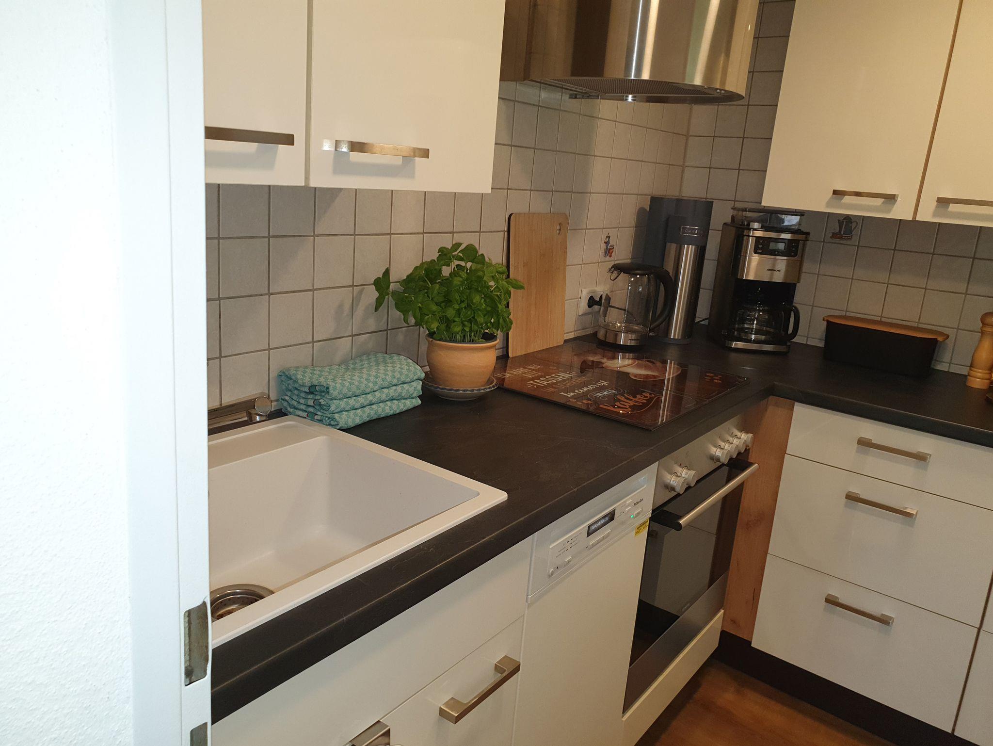 Es gibt 3 Doppelzimmer, 1 Einzelzimmer, 1 Wohnzimmer, 1 Bad mit Dusche und WC , Haartrockner. (Dusch- und Handtücher sind inbegriffen).Eine komplett ausgestattete Küche mit Kühl.-und Gefrierkombination, 1 zusätzlichen Kühlschrank für Getränke mit Eisfach,Elektroherd mit Backofen, Mikrowelle, Kaffeemaschine, Wasser.-Eierkocher, Toaster, Sodastream und Alles was die Küche braucht. 1 Wohnstube mit Essbereich für 7 Personen und einen Ohrensessel zum chillen.