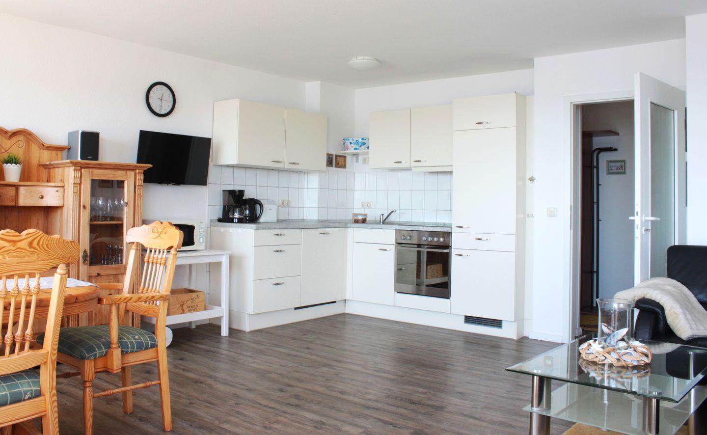 Die integrierte Küche verfügt über viele technische Geräte, die Sie für eine Selbstversorgung benötigen. Hierzu zählen unter anderem ein Herd mit Backofen, ein Kühlschrank mit Gefrierfach, eine Kaffeemaschine, Wasserkocher und Toaster sowie viele weitere Utensilien.