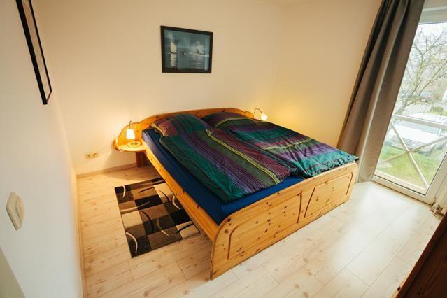 Ein Schlafzimmer verfügt über ein klassisches Doppelbett, das zweite Schlafzimmer über ein Etagenbett für drei Personen, die untere Liegefläche entspricht einem Doppelbett (1,40 m breit).Die Wohnung ist damit besonders für Familien mit bis zu drei Kindern geeignet.