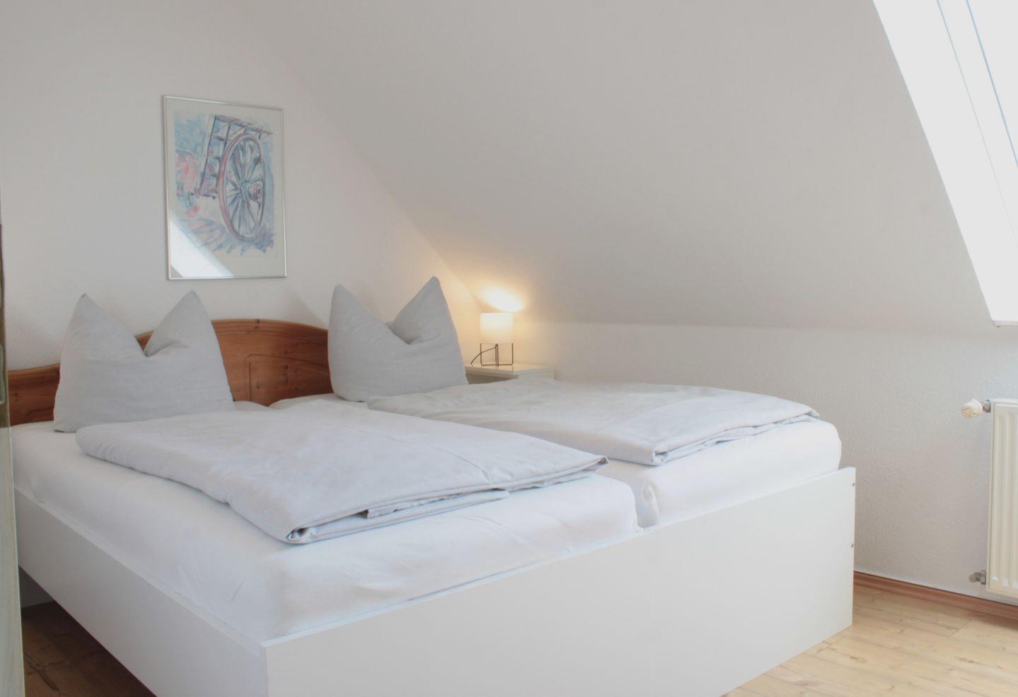 Die zwei separaten Schlafzimmer sind mit komfortablen Doppelbetten und Kleiderschränken möbliert.