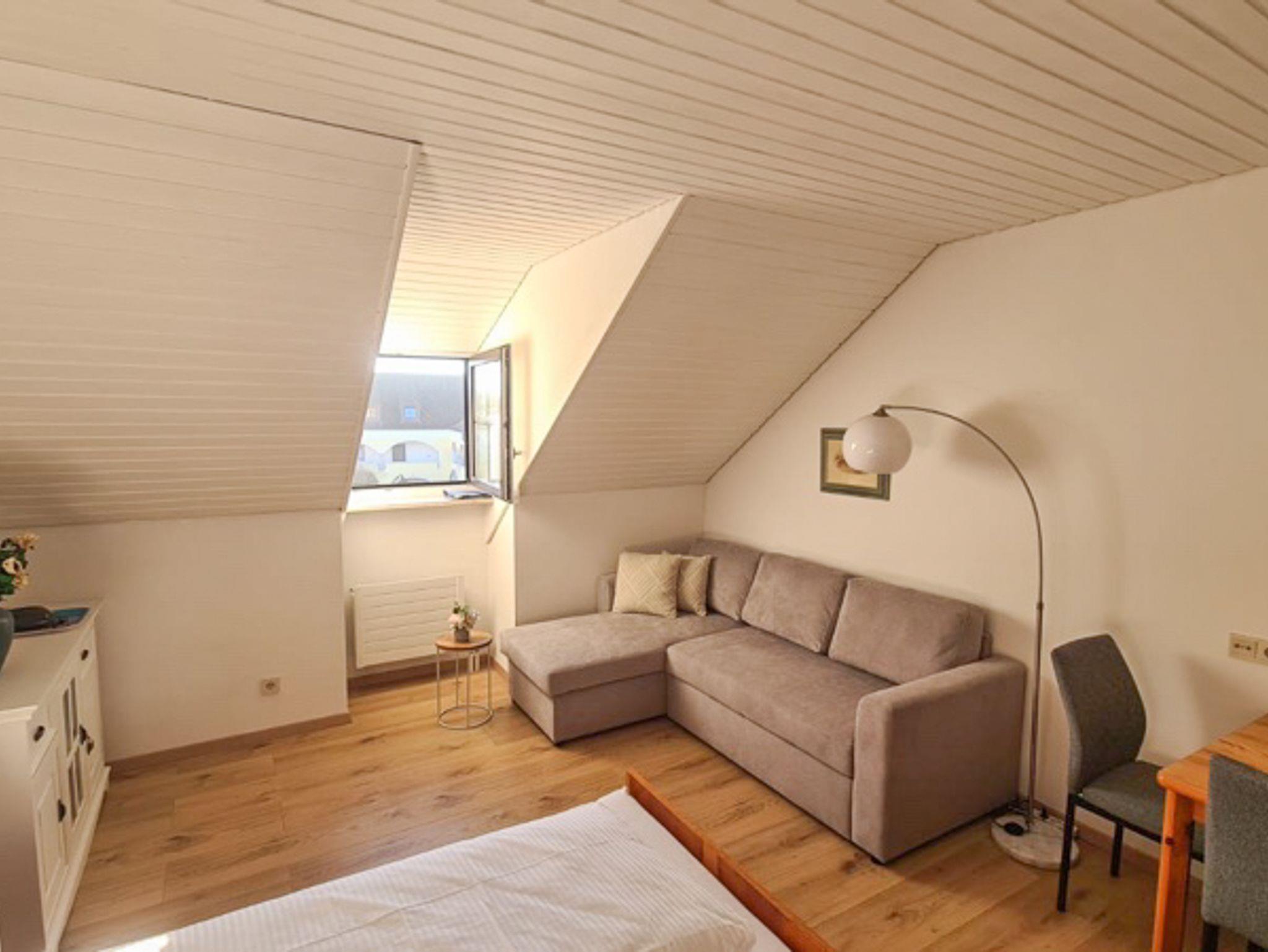 Das Apartment besticht durch eine stilvolle Einrichtung, die Komfort und Funktionalität vereint. Es verfügt über ein gemütliches Wohn-/Schlafzimmer mit einem komfortablen Doppelbett sowie einer Couch, die zu einem großen Bett umgebaut werden kann, ideal für Familien oder Freunde. Die kleine Küchenzeile ist komplett ausgestattet und lädt dazu ein, gemeinsam zu kochen und zu essen. Das helle Badezimmer mit Dusche bietet Ihnen alle Annehmlichkeiten, die Sie für einen angenehmen Aufenthalt benötigen.