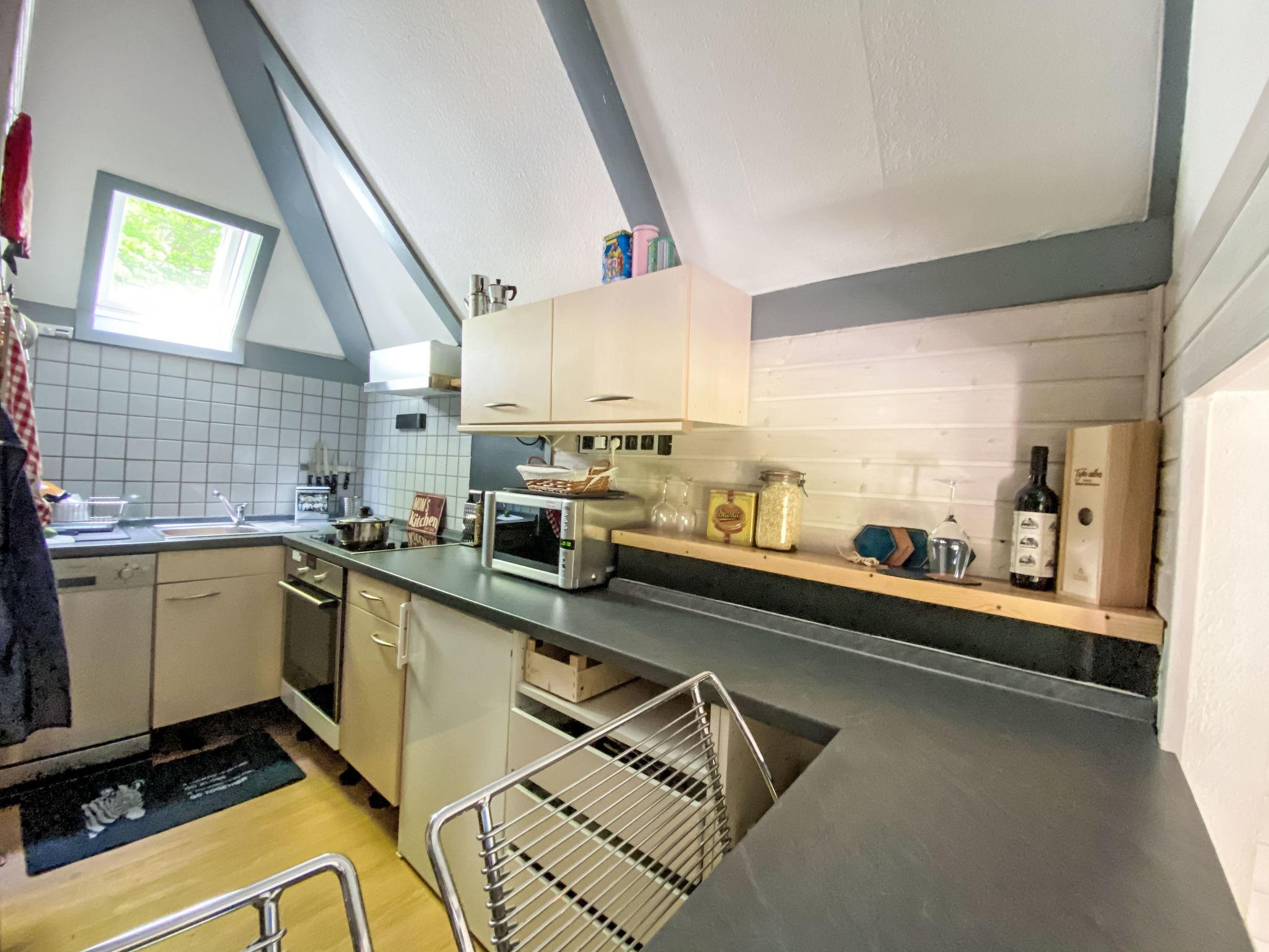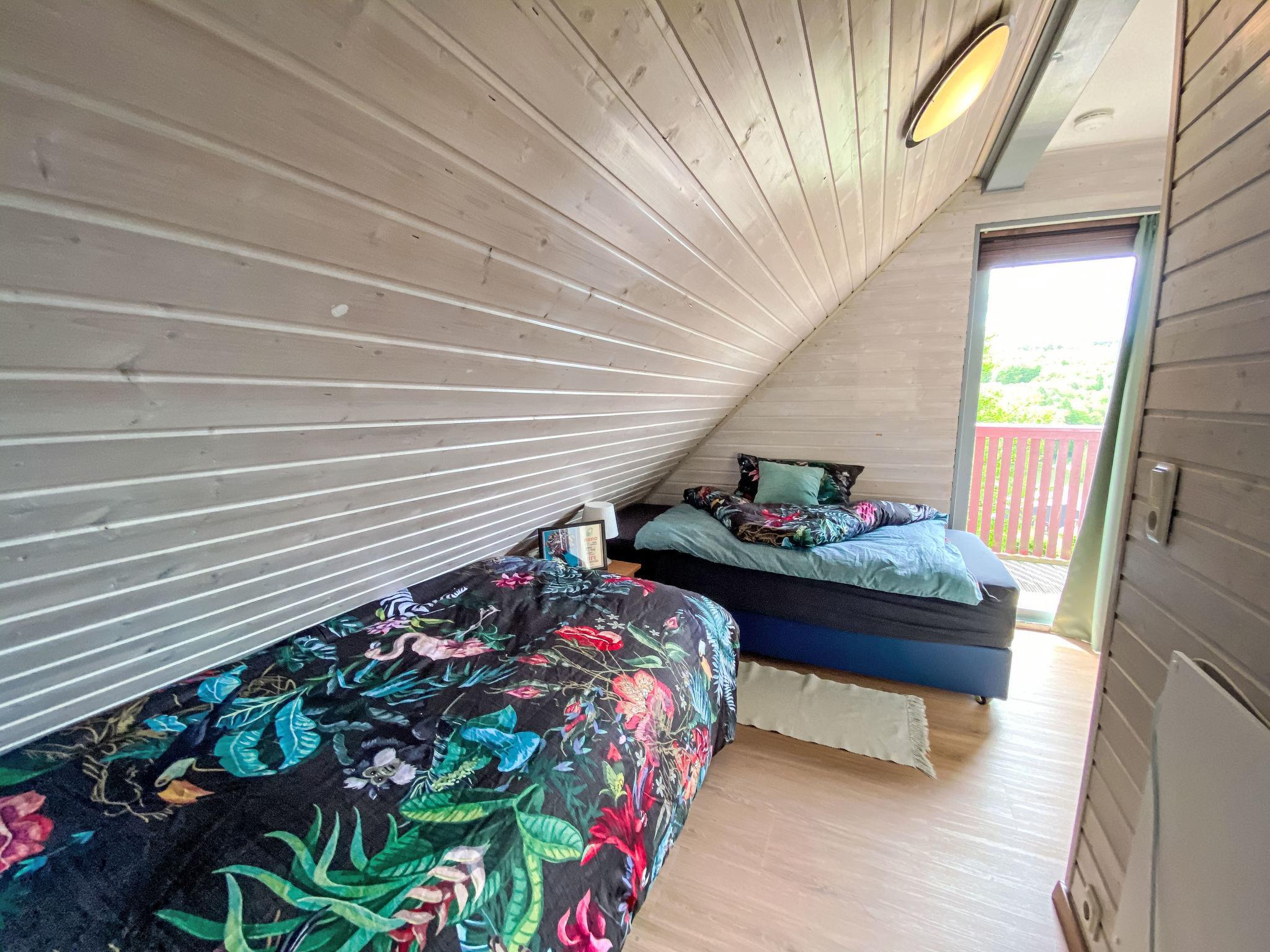 "LoLa", 4-room house 75 m2 on 2 levels. Cosy furnishings: living/dining room with open-hearth fireplace and satellite TV (flat screen), DVD. Exit to the terrace. 1 room with 1 double bed. Open kitchen (oven, dishwasher, 4 ceramic glass hob hotplates, kettle, microwave, electric coffee machine). Shower/WC, sep. WC. Upper floor: (spiral staircase), 1 room with sloping ceilings with 1 double bed. Exit to the balcony. 1 room with sloping ceilings with 2 beds and hand-basin. Exit to the balcony. Electric heating. Small balcony, terrace partly roofed. Terrace furniture, balcony furniture, barbecue. Beautiful view of the lake. Facilities: children's high chair, baby cot. Internet (WiFi, free). Please note: non-smoking house. Smoke alarm, fire extinguisher. Na parterze pokoje polaczone sa schodami (pólpietra).