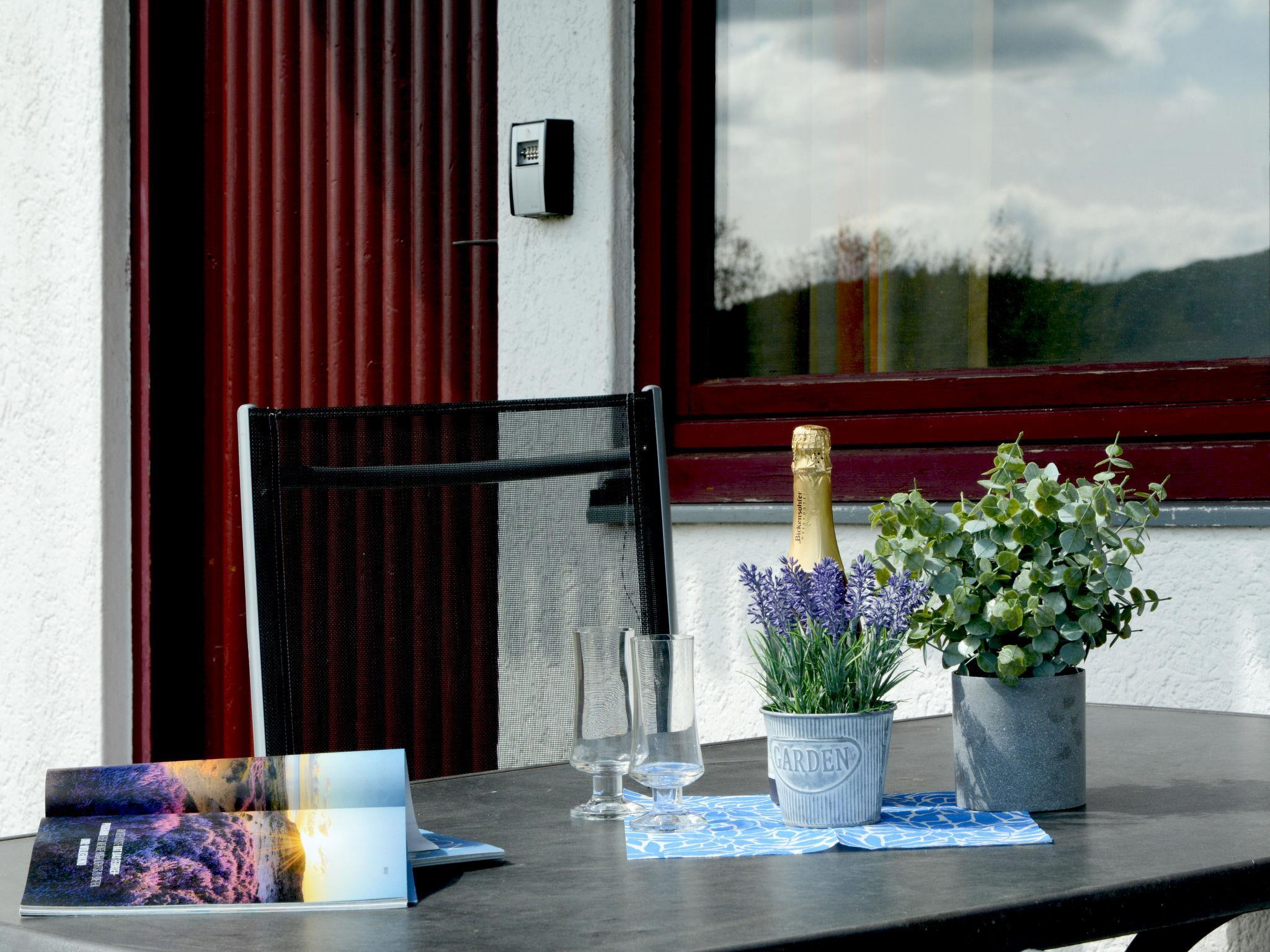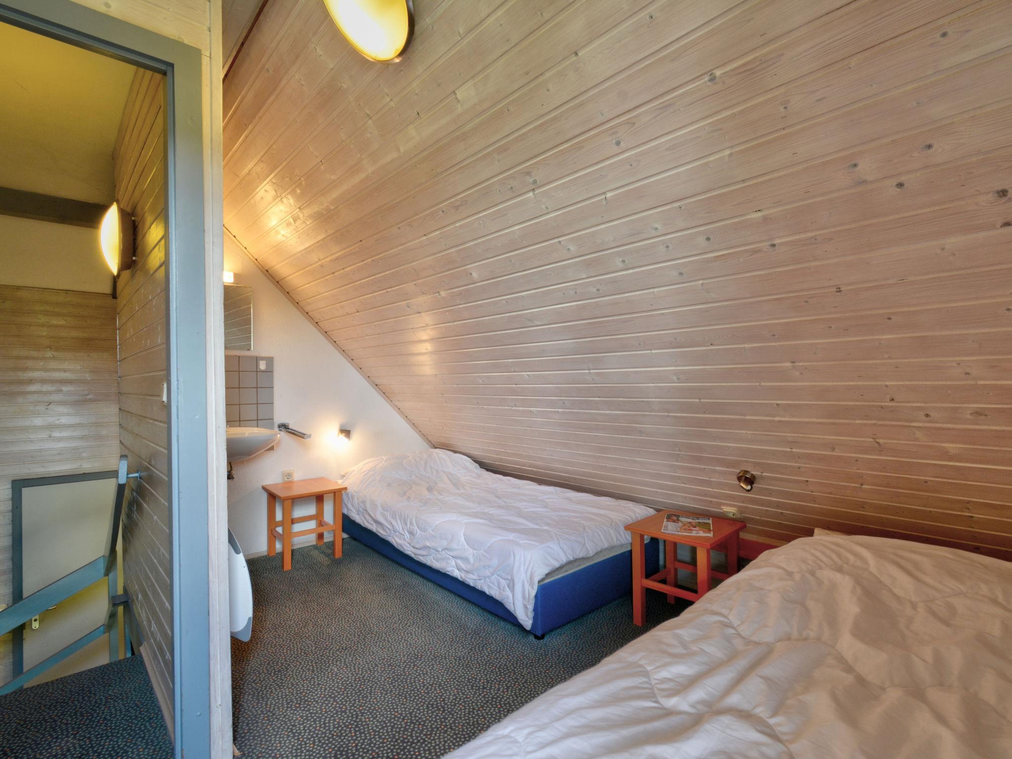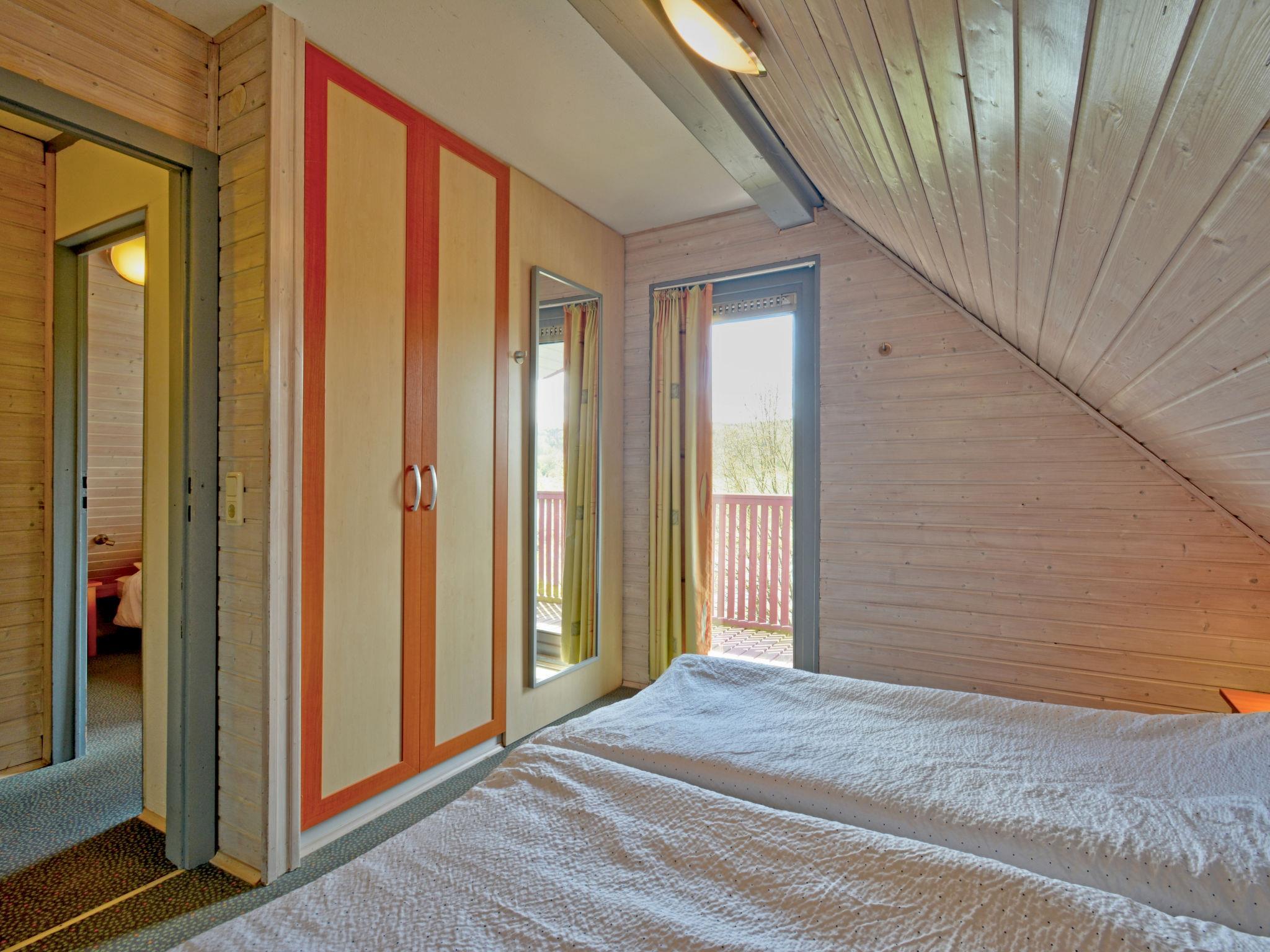 "Dorf 1/Haus 14", 4-room house 75 m2 on 2 levels, on the ground floor. Cosy furnishings: living/dining room 22 m2 with open-hearth fireplace and satellite TV (flat screen). Exit to the terrace, to the patio. 1 room 12 m2, with sloping ceilings with 2 beds (90 cm, length 200 cm). Open kitchen 8 m2 (mini-oven, 4 ceramic glass hob hotplates, microwave, electric coffee machine). Shower/WC, sep. WC. Upper floor: (spiral staircase), 2 rooms 10 m2, with sloping ceilings, each room with 2 beds (90 cm, length 200 cm), hand-basin. Exit to the balcony. Electric heating. Small balcony 5 m2, terrace 10 m2 partly roofed, patio 30 m2, lawn 30 m2. Terrace furniture, balcony furniture, barbecue (portable). Beautiful view of the lake and the countryside. Facilities: children's high chair, logs (extra). Parking at 100 m. Please note: non-smoking house. Maximum 2 pets/ dogs allowed. Smoke alarm, fire extinguisher. On the ground floor, the rooms are connected by stairs(mezzanine). Distance to the reservoir: 200 m. Steep path from the car park to the house.