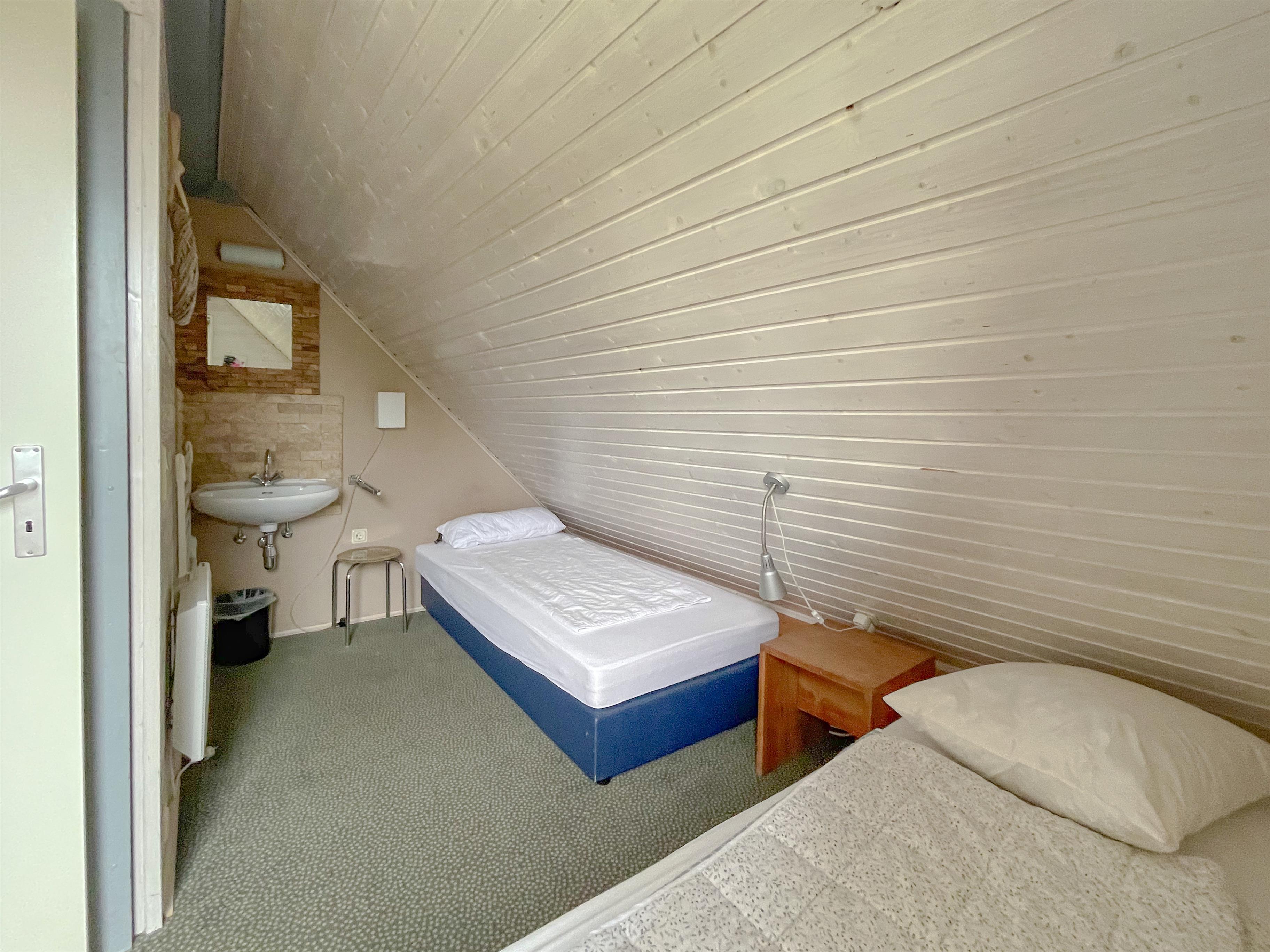 Im Obergeschoss liegen 2 weitere Schlafzimmer, das eine mit Doppelbett, das andere mit 2 separaten Betten. Darüber hinaus lädt im Obergeschoß ein großer Balkon zum Entspannen ein und darunter im Erdgeschoß eine schöne Terrasse. Beide Schlafzimmer im DG verfügen je über einen eigenen Balkonzugang (Süden). Von hieraus können Sie die Blicke über den gesamten Ferienpark schweifen lassen.