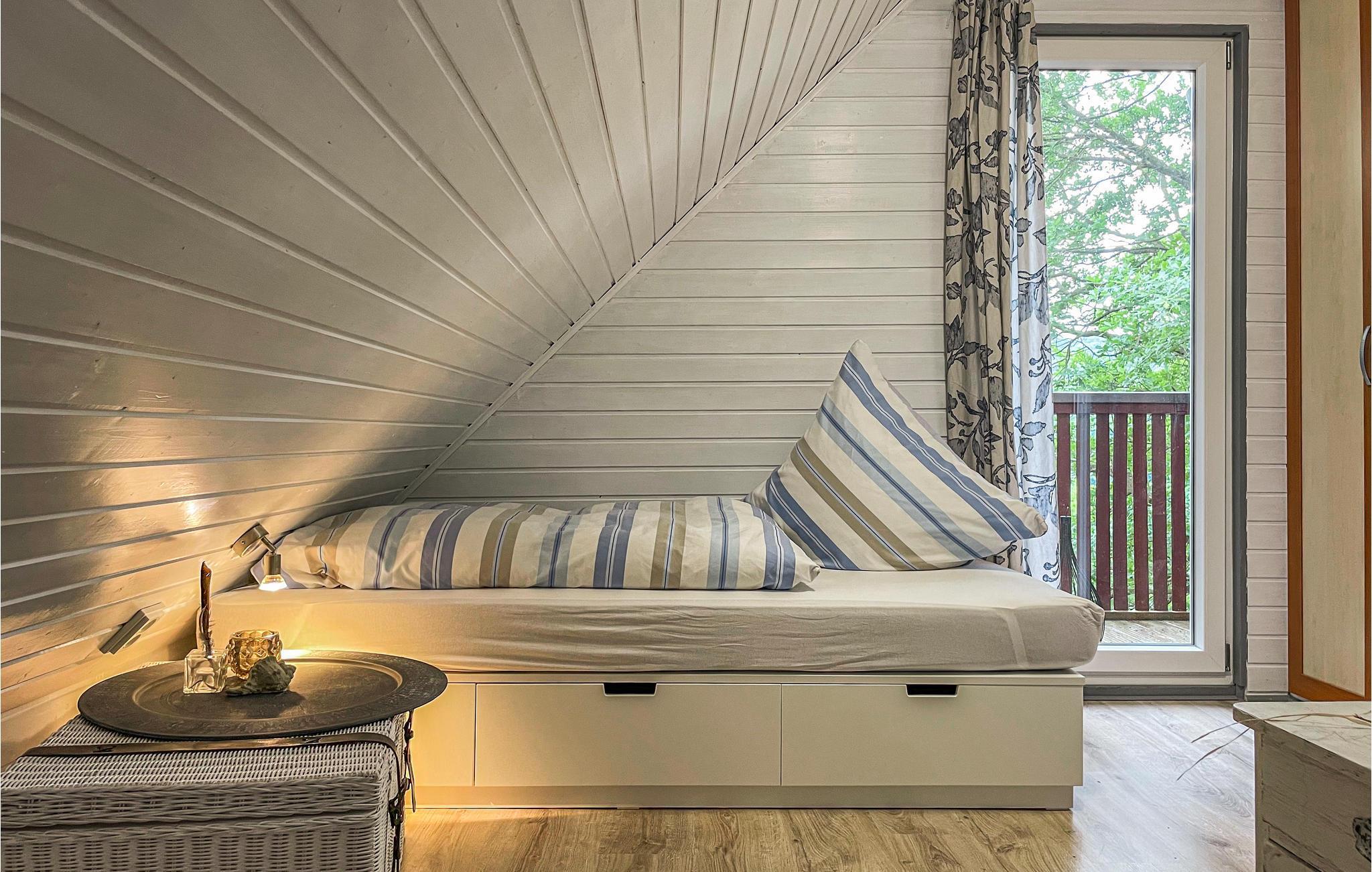 Zwei weitere Schlafräume mit Dachschrägen erreichen Sie über eine Wendeltreppe in der 2. Etage. Im Küstenzimmer finden Sie zwei Einzelbetten (90x200) und im Familienzimmer ein Doppelbett (160X200). Hier kann in einer kleinen Nische ein zusätzliches Babybett (60x120cm) aufgebaut werden.
