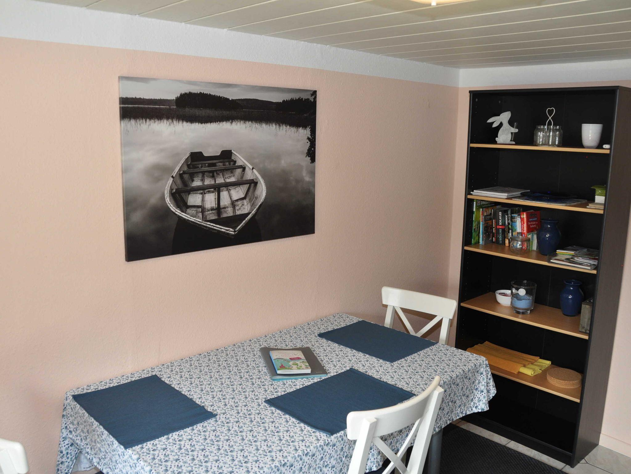 Die Nichtraucherwohnung für 2 bis 4 Personen befindet sich in einem Doppelhaus und verfügt über einen separaten Eingang und eigene Terrasse. Die Zimmer verteilen sich auf zwei Etagen. Die Wohnung besteht aus einer Küche, einem Esszimmer, einem großen Schlafzimmer mit Doppelbett und einer ausziehbaren Schlafcouch sowie einem geräumigen Badezimmer. Im Obergeschoss befindet sich ein Wohnzimmer mit zusätzlicher Schlafmöglichkeit und einer Spielecke.