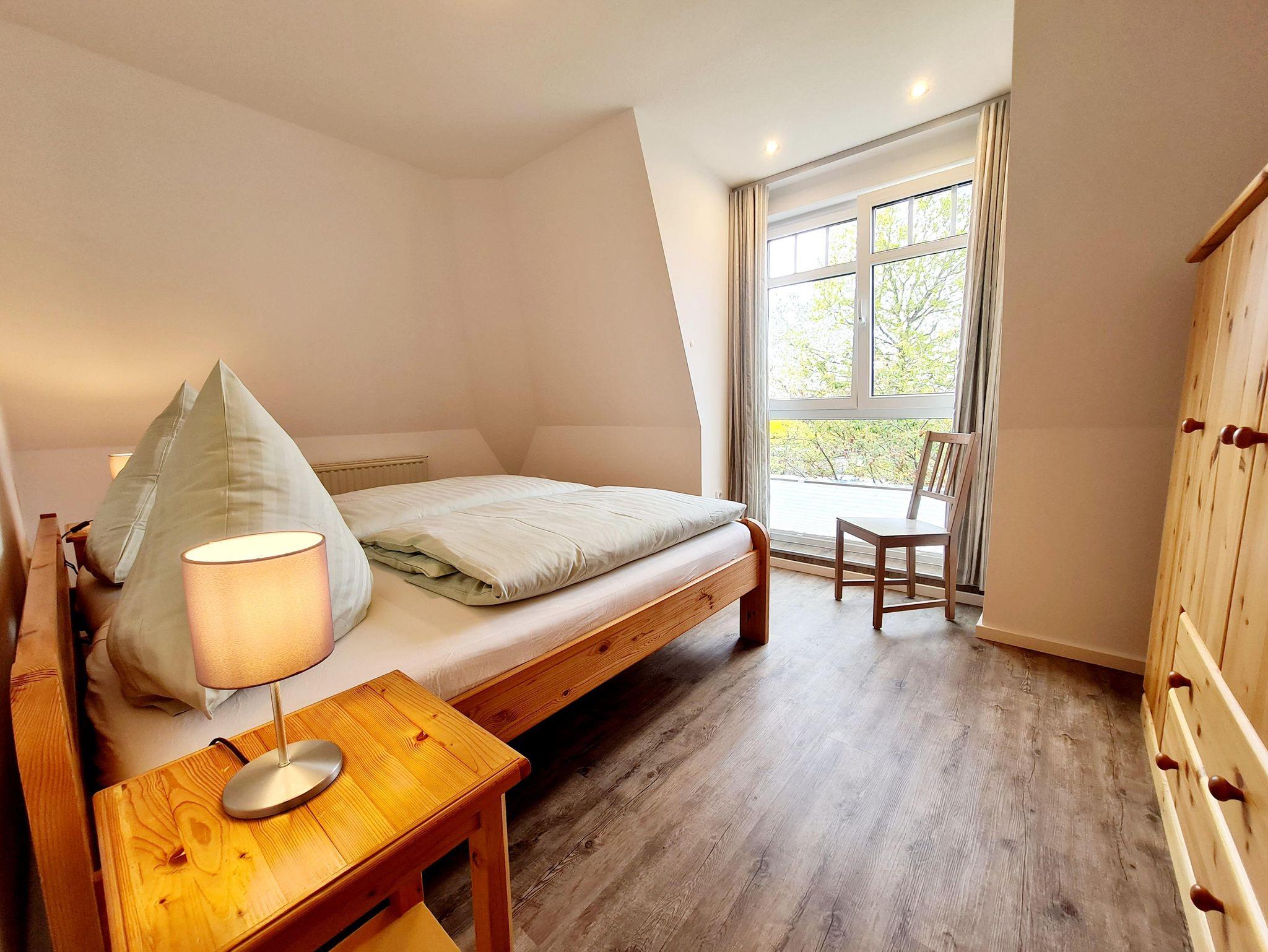 Ihnen stehen einen Schlafraum mit einem Doppelbett und ein Kinderzimmer mit einem Etagenbett zur Verfügung.