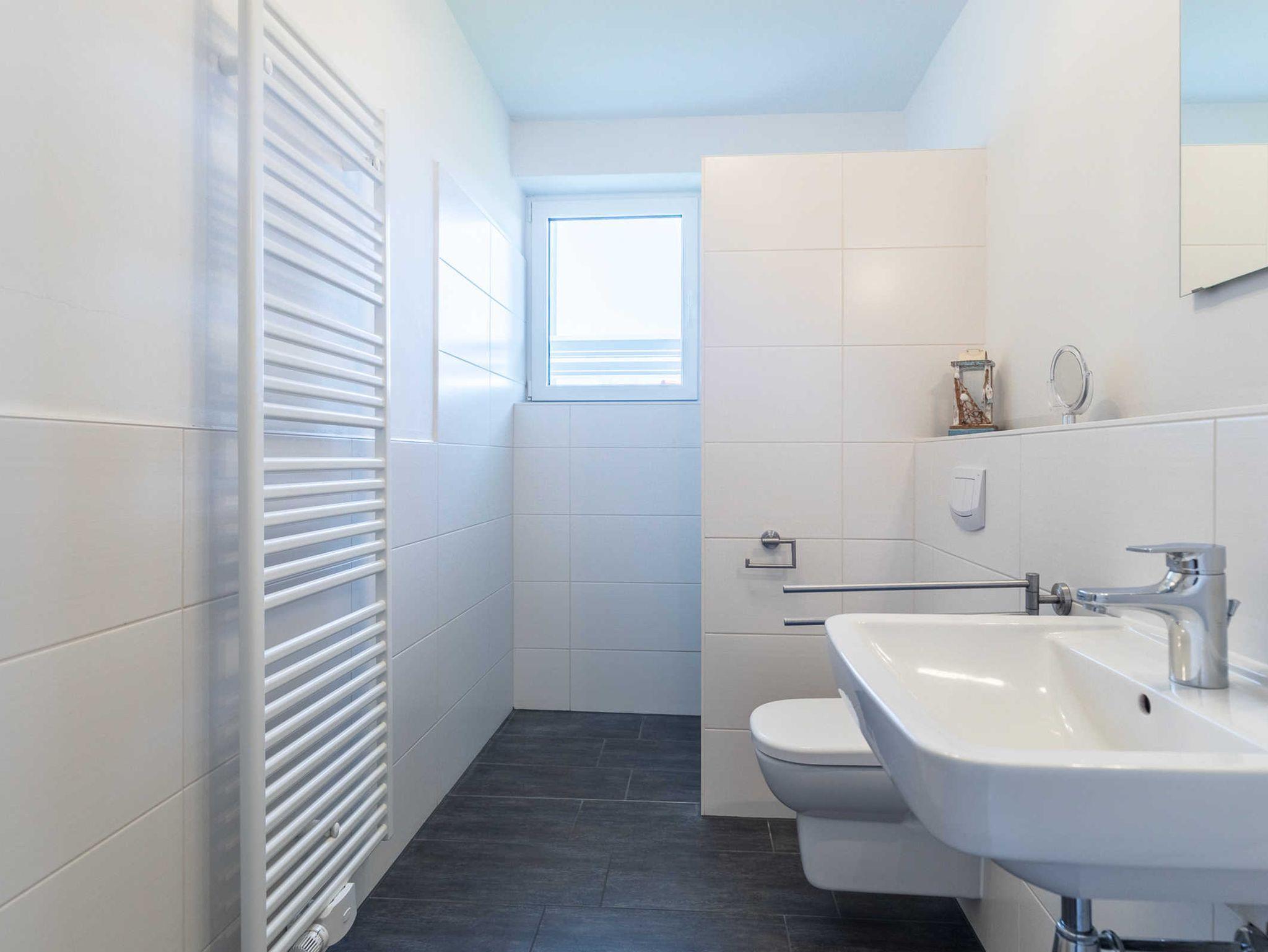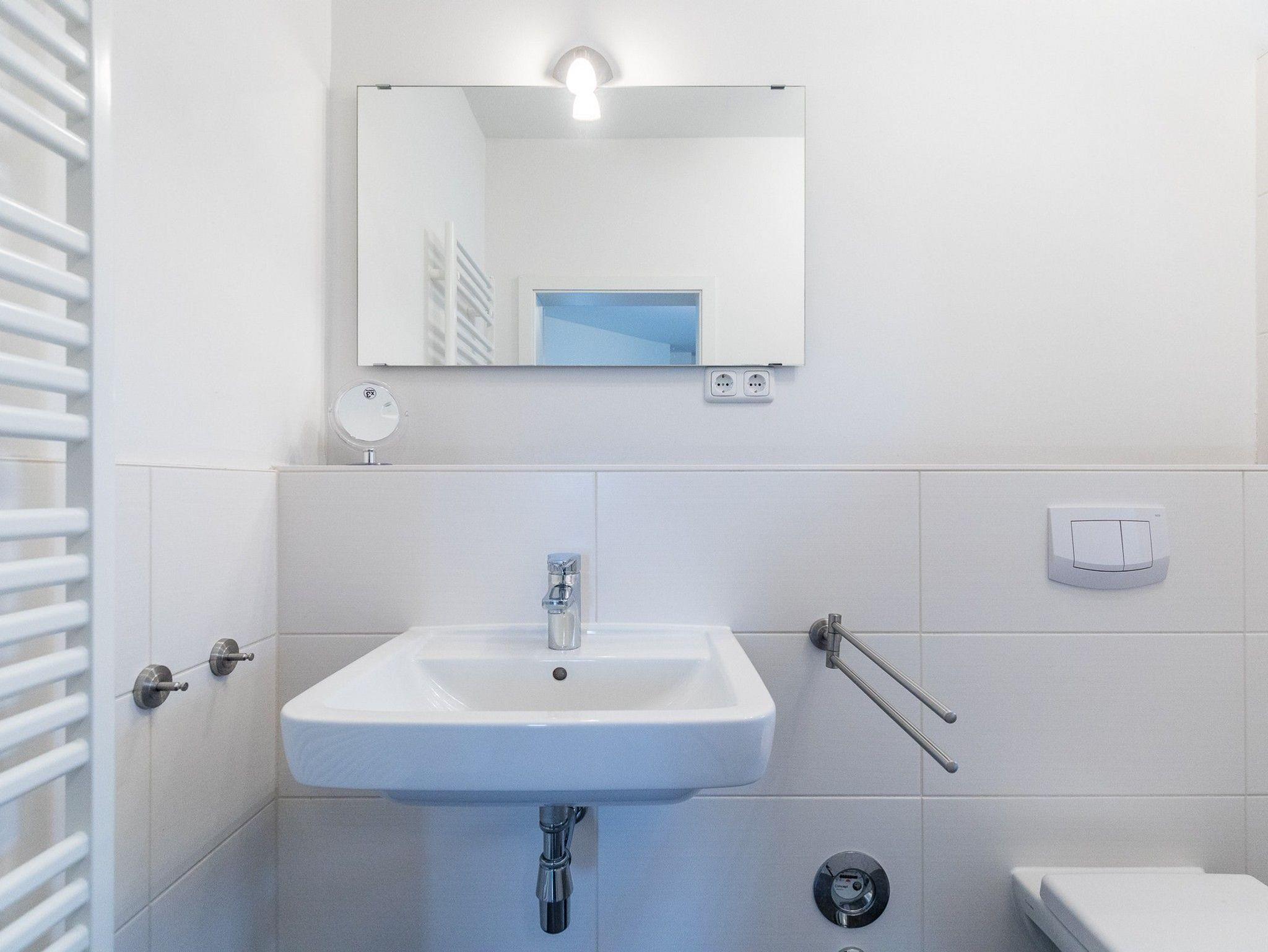 Beide Bäder sind mit Dusche/ WC ausgestattet, bieten Föhn, Kosmetikspiegel und Handtuchtrockner. Weiterhin befindet sich in einem Bad eine gebührenfreie Waschmaschine.