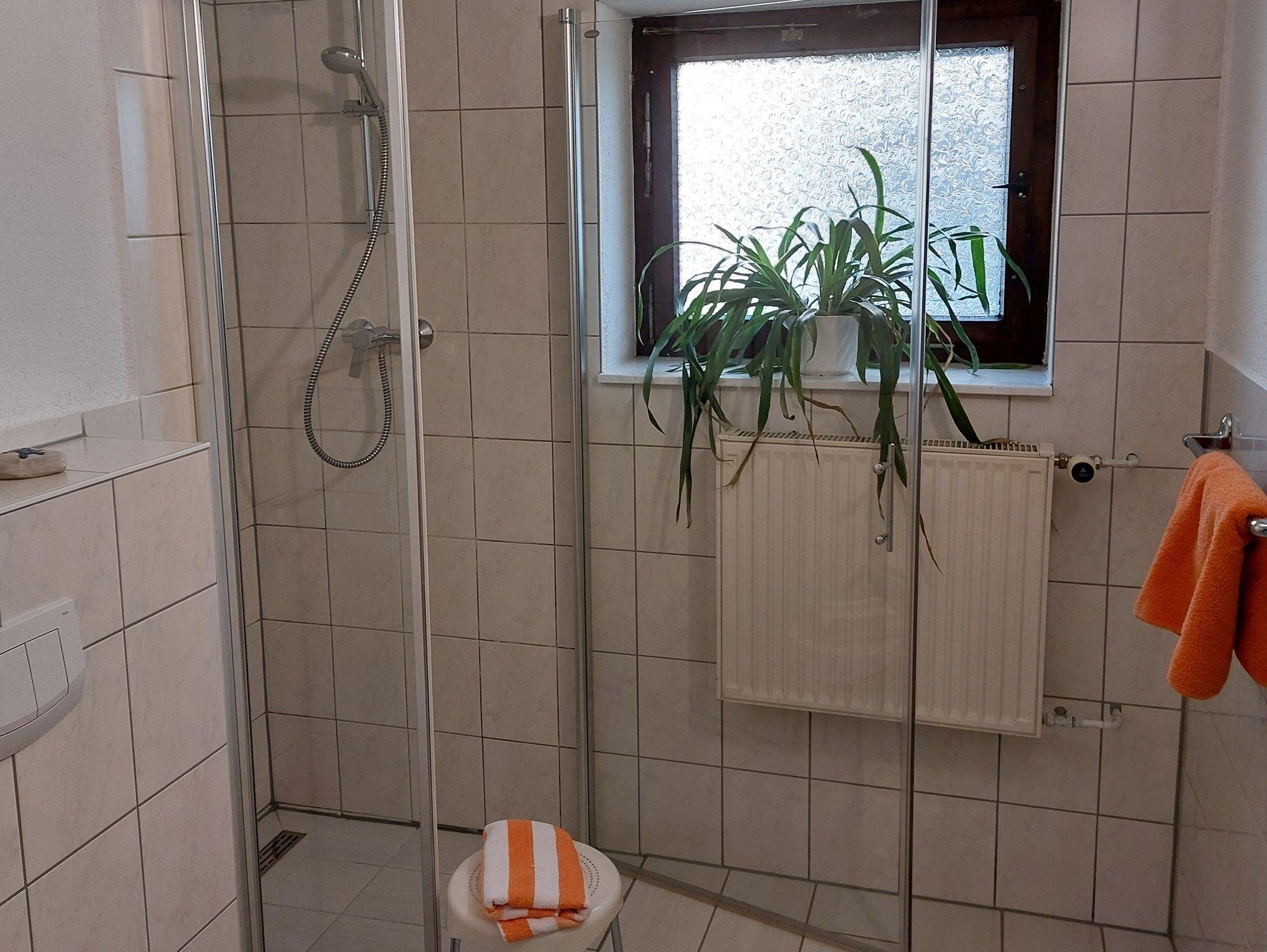 Sie übernachten in drei gemütlich eingerichteten ebenerdigen Doppelbettzimmern mit eigener ebenerdiger Dusche bzw. Vollbad. Das Zimmer und die Dusche sind ebenerdig.
