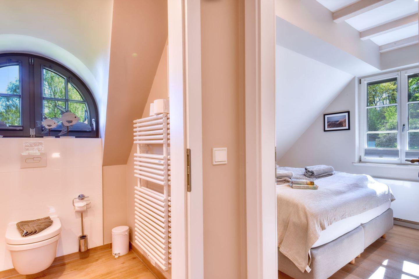 Zubereiten können Sie sie in der offenen und modernen Küche. Alle Geräte sind hochwertig. Ein komplettes Geschirr-Service befindet sich in den Schränken. Abwaschen muss hier zum Glück niemand. Es gibt einen Geschirrspüler. Weiter geht’s mit den beiden komfortablen Schlafzimmern. Zwei bequeme Boxspringdoppelbetten (1,80 x 2,00) versprechen erholsame Träume. Die Zimmer verfügen über je einen Kleiderschrank und ebenfalls einen Flat-TV. Zwei Bäder mit Dusche und WC sorgen für genügend Raum zum Frischmachen. Das Bad im EG ist zudem mit einer Finnischen Sauna ausgestattet. Bei Anreise liegen Handtücher für Sie bereit und die Betten sind bezogen.