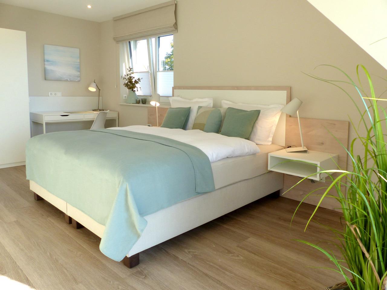 Schauen Sie aus den hochwertigen Boxspring-Betten, 180 x200 cm, über den freien Wittensee oder bestaunen Sie die unterschiedlichen Farbspiele der winterlichen Sonnenaufgänge.